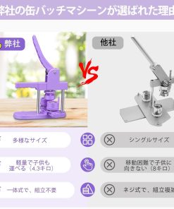 - ?【組み立て不要】バッジマシン本体と金型が一体化した、オールインワンの缶バッジマシーンは複雑な機械部品を組み立てる作業が不要です。強い力も必要ではなく、人間工学に基づいて設計されたハンドルと快適なグリップにより、迅速かつ省力なバッジ作成が可能になります。子供でも簡単に操作できます。