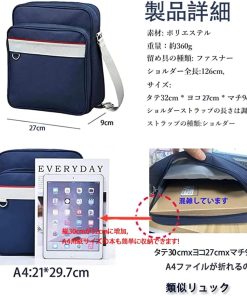 - 通学カバン:ショルダー全長:126cm, ショルダーストラップの長さは調節可能で,肩掛けのバンドは幅広なので楽です。