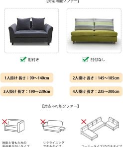 - 伸縮性が優れる素材:一人掛け90~140cm、 二人掛け145~185cm、三人掛け190~230cm、 四人掛け235~300cm 人工測量なので、多少の誤差がある場合がございます。ご購入頂く前に、ご自宅のソファーサイズを先にご測量ください。わからない場合は、大きいサイズを使用してください。(クッションカバーがありません)