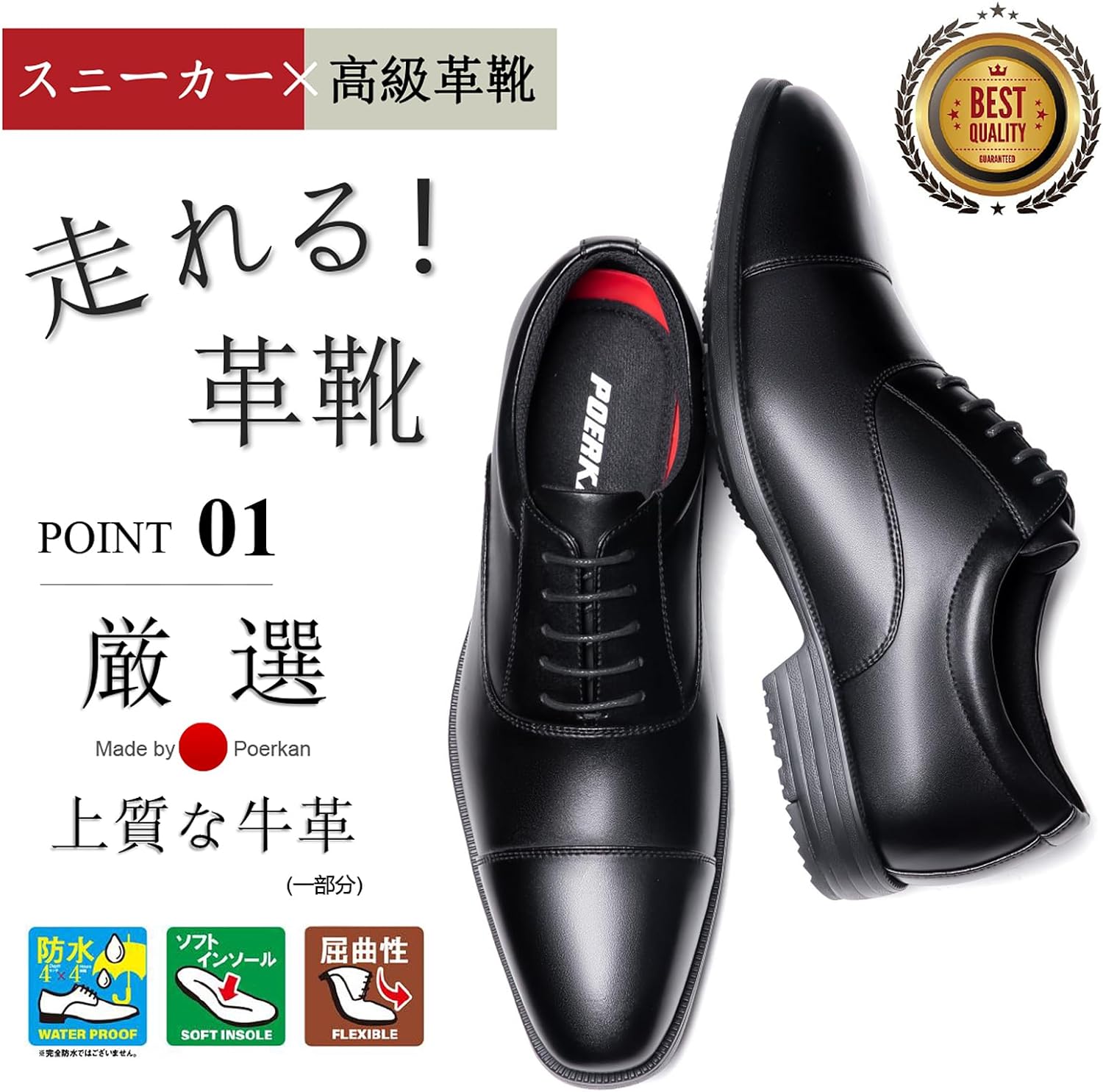 - 【走れるビジネスシューズ】素材を一から見直し作りこんだ圧倒的パフォーマンス。スニーカーのような履き心地に足あたりの良いアッパーは靴擦れしにくく仕上がりました。持った瞬間に気づく軽さも魅力で軽やかに歩き出せる事にきっと驚きます。※ランニング等を前提には作られておりません。