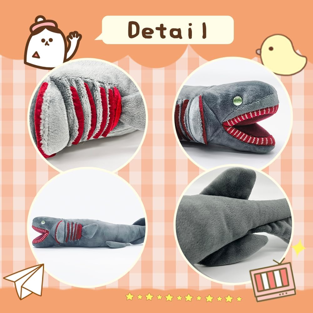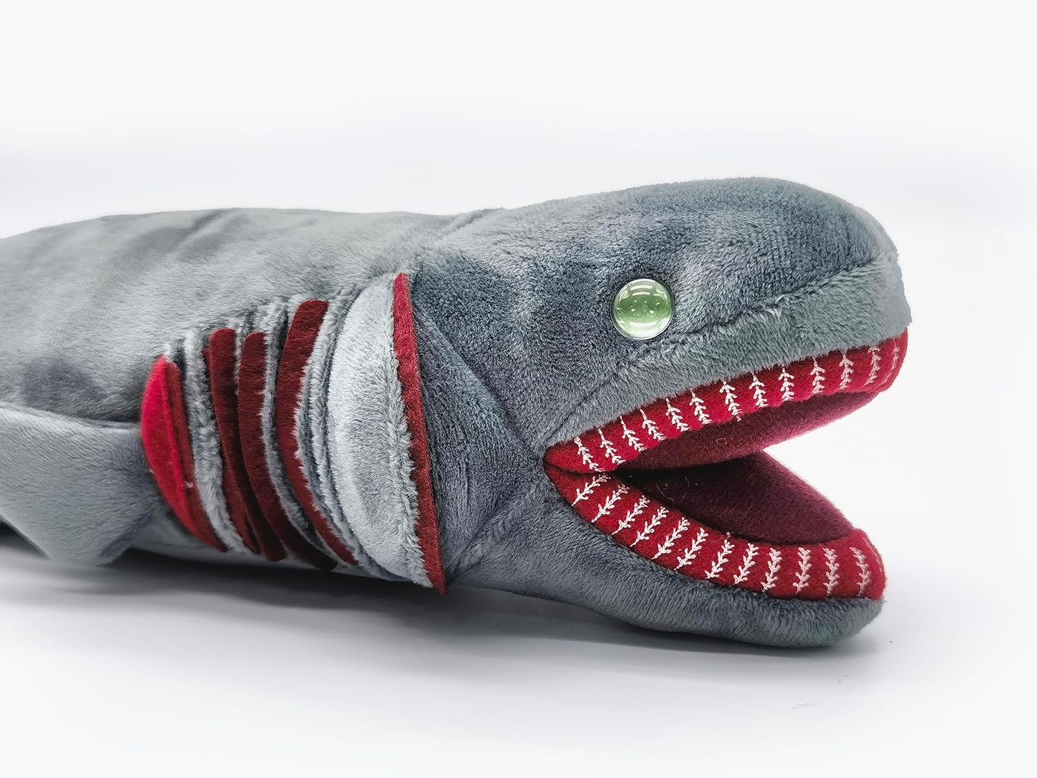 - 「リアルな深海魚」非常に大きい口は普通のサメと異なって体前端に開く。口角に溝・褶はない。歯列は隙間を開けて並び特徴はもちろん、体のフォルム・体色の細部に至るまでこだわり、丁寧に作り上げました。リュウグウノツカイのリアルさを追及しながらも魚の持つ愛らしい表情とぬいぐるみの柔らかを生かした親しみのあるぬいぐるみです。