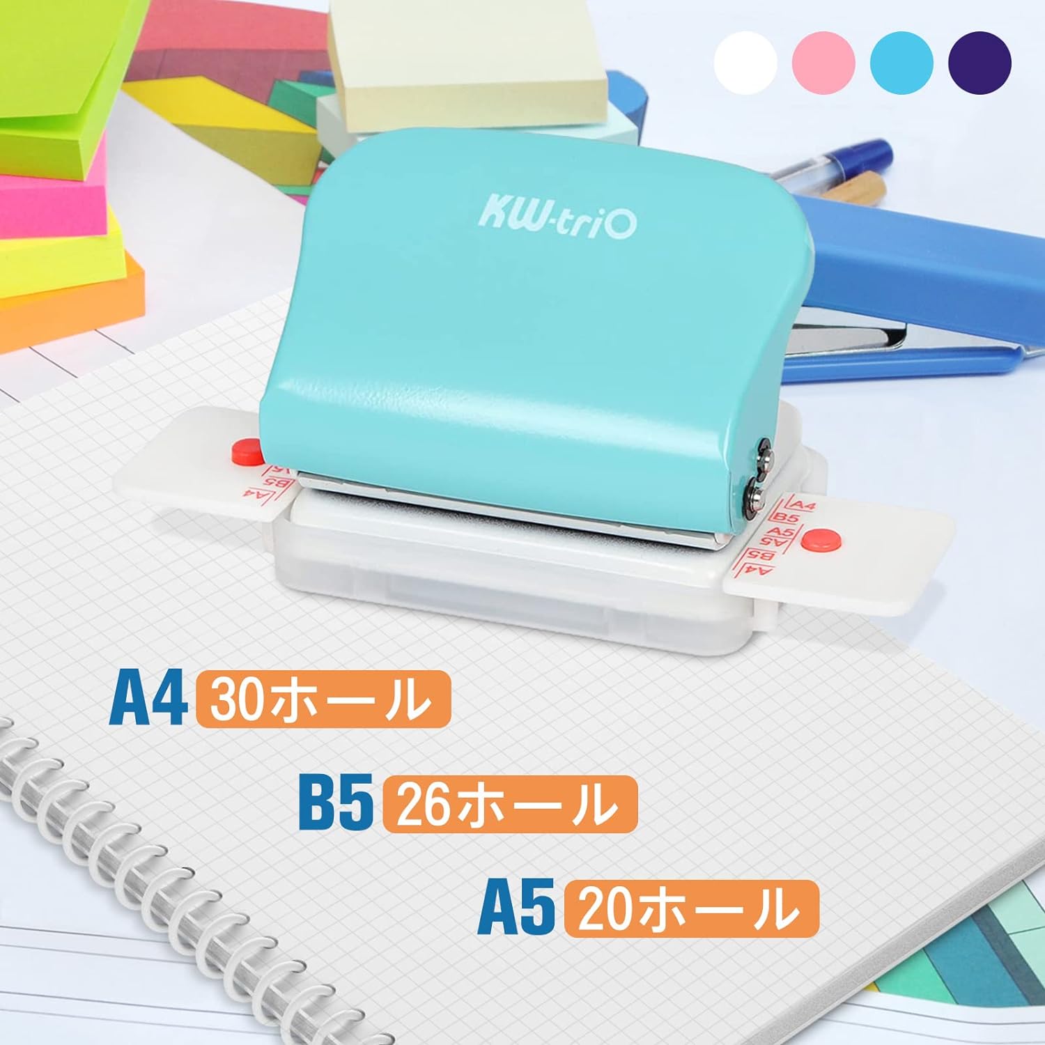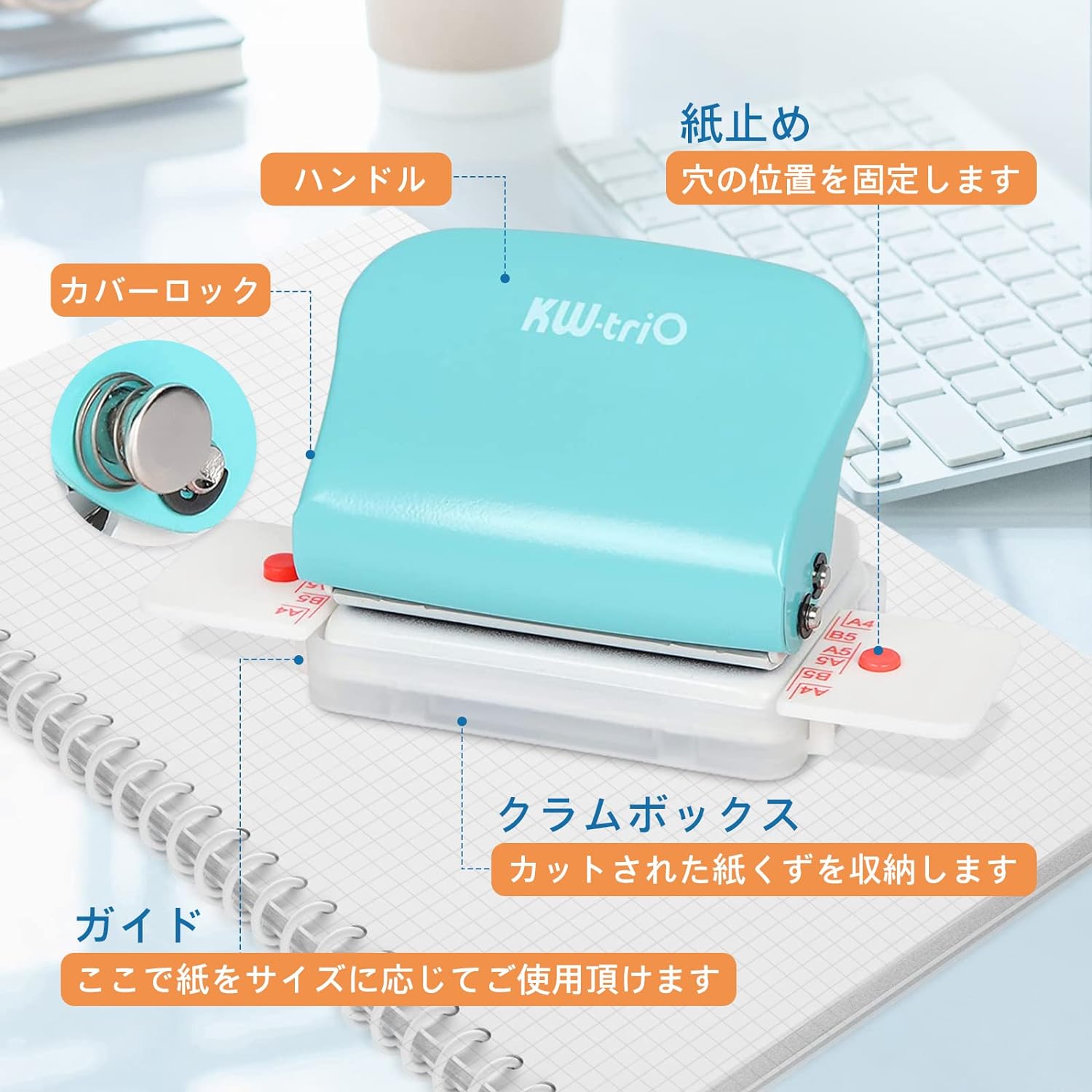- ?【サイズ】直径6mmの穴【用紙マージン】最大7mm【穴間隔】9.5mm【最大枚数】5枚、A4 / B5 / A5用紙に適しています。