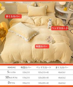 - 【サイズ展開】掛け布団カバーには8箇所のズレ防止紐が付いて、しっかり固定できます。ベッドスカートがゴム付いて、脱着が簡単です。3点セットシングルサイズ:布団カバー:150cm*210cm ベッドスカート:100cm*(200+45マチ)cm まくらカバー:43cm*63cm*1点 /4点セットセミダブル:布団カバー:170cm*210cm ベッドスカート:120cm*(200+45マチ)cm まくらカバー:43cm*63cm*2点/4点セットダブル:布団カバー:190cm*210cm ベッドスカート:140cm*(200+45マチ)cm まくらカバー:43cm*63cm*2点 真空で出荷し、商品を受け取ってから数日置くとさらにふわふわになります。