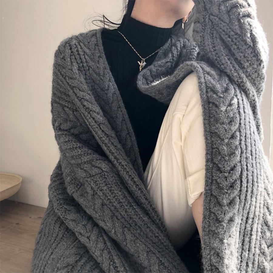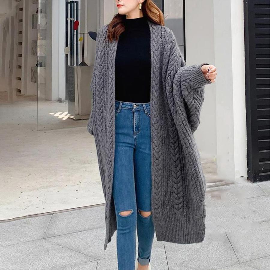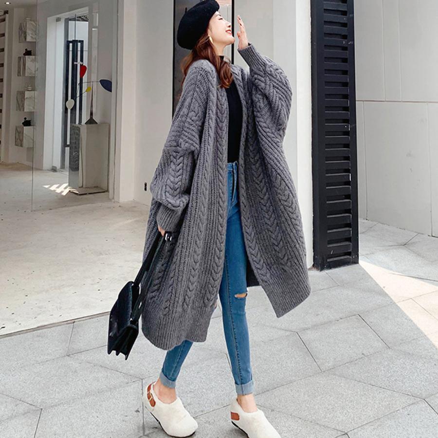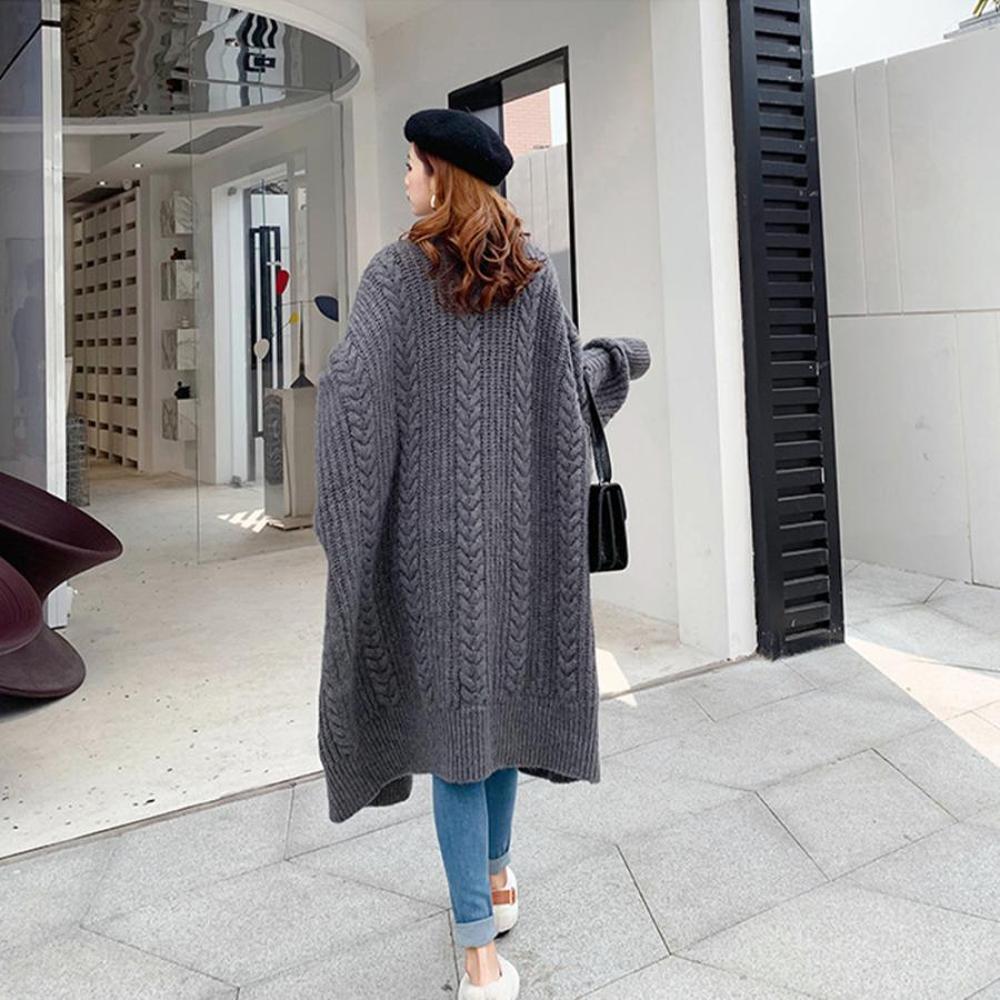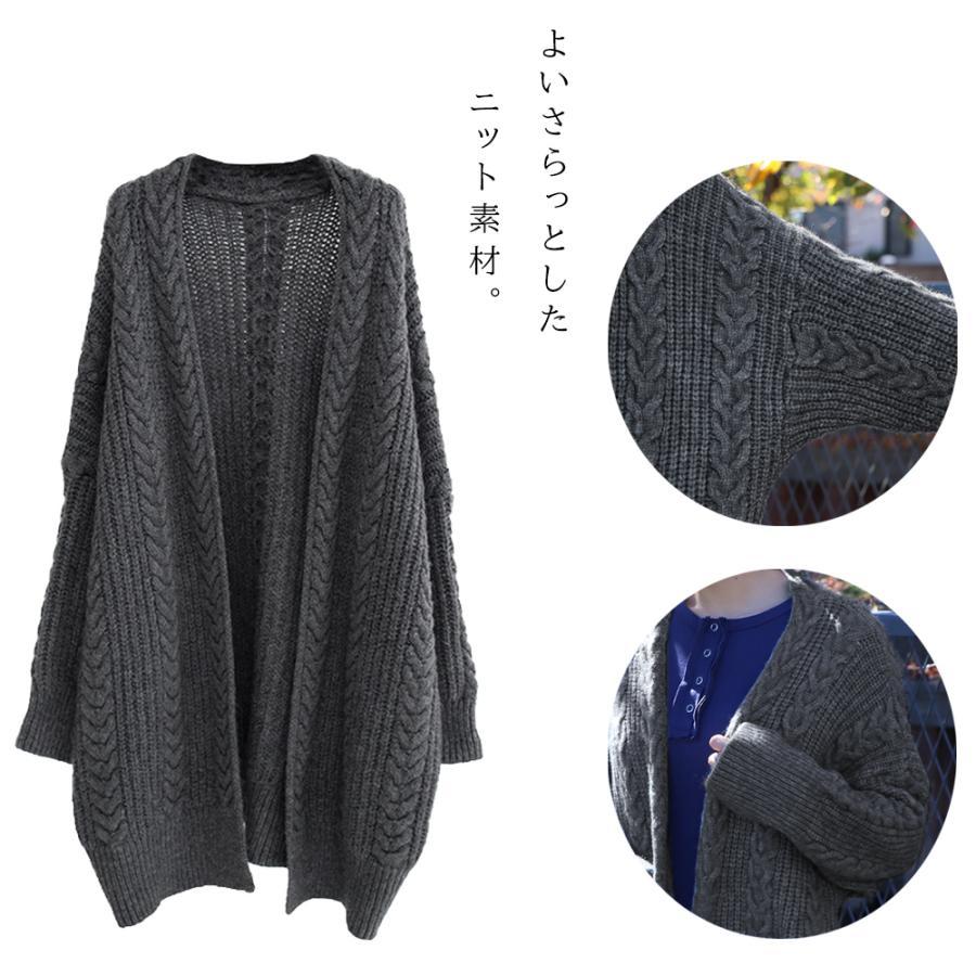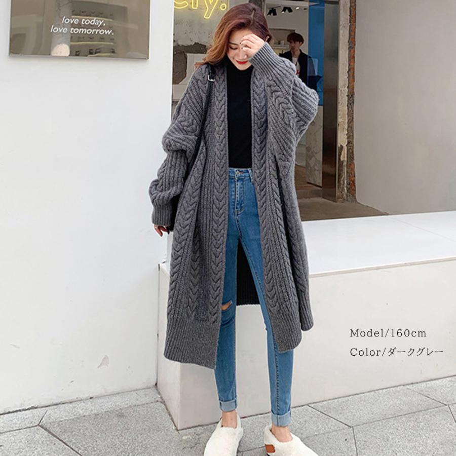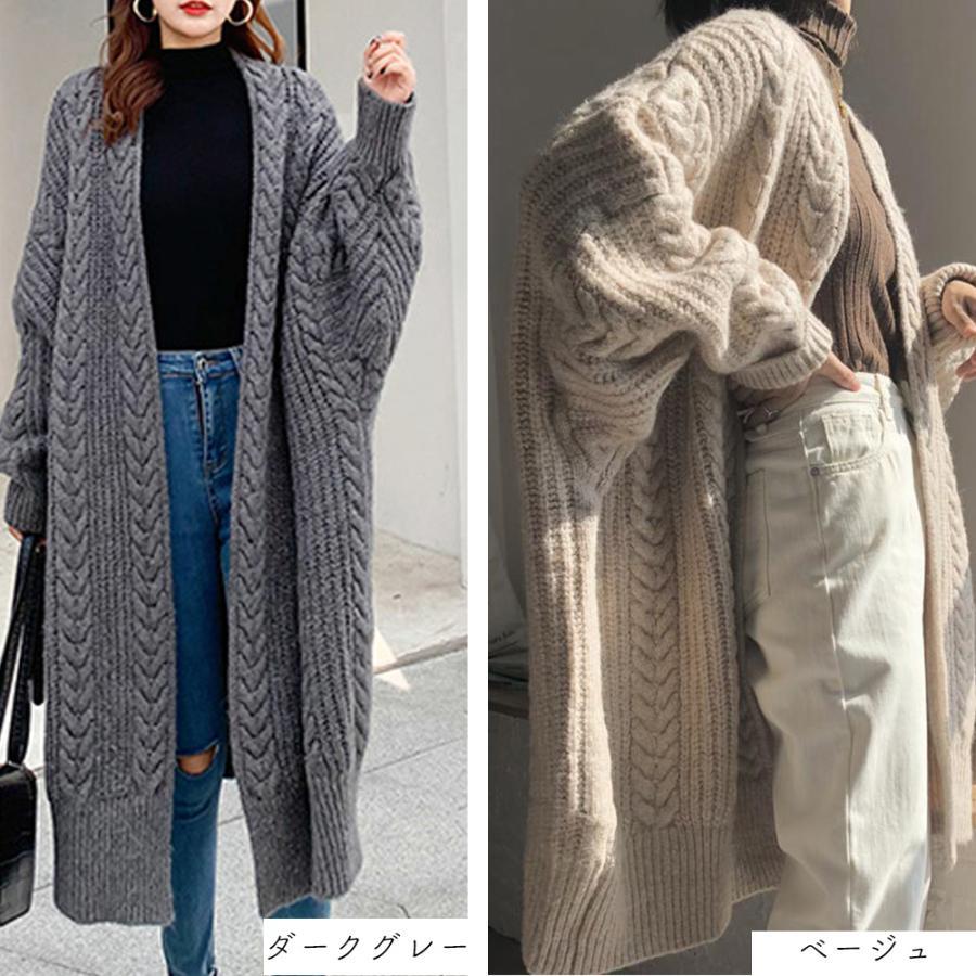 コーディガン レディース ロング丈 ニットカーディガン 厚手 韓国風 ライトアウター ケーブル編みカーデ 秋冬
