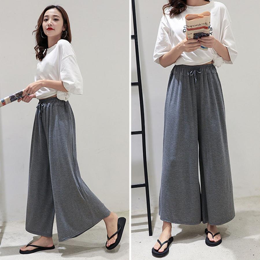 足の形を拾わないゆったりめのスカーチョシルエット、癖になるふわっと軽やかな心地良さ、カジュアルながらも上品な着こなしができるおすすめアイテム