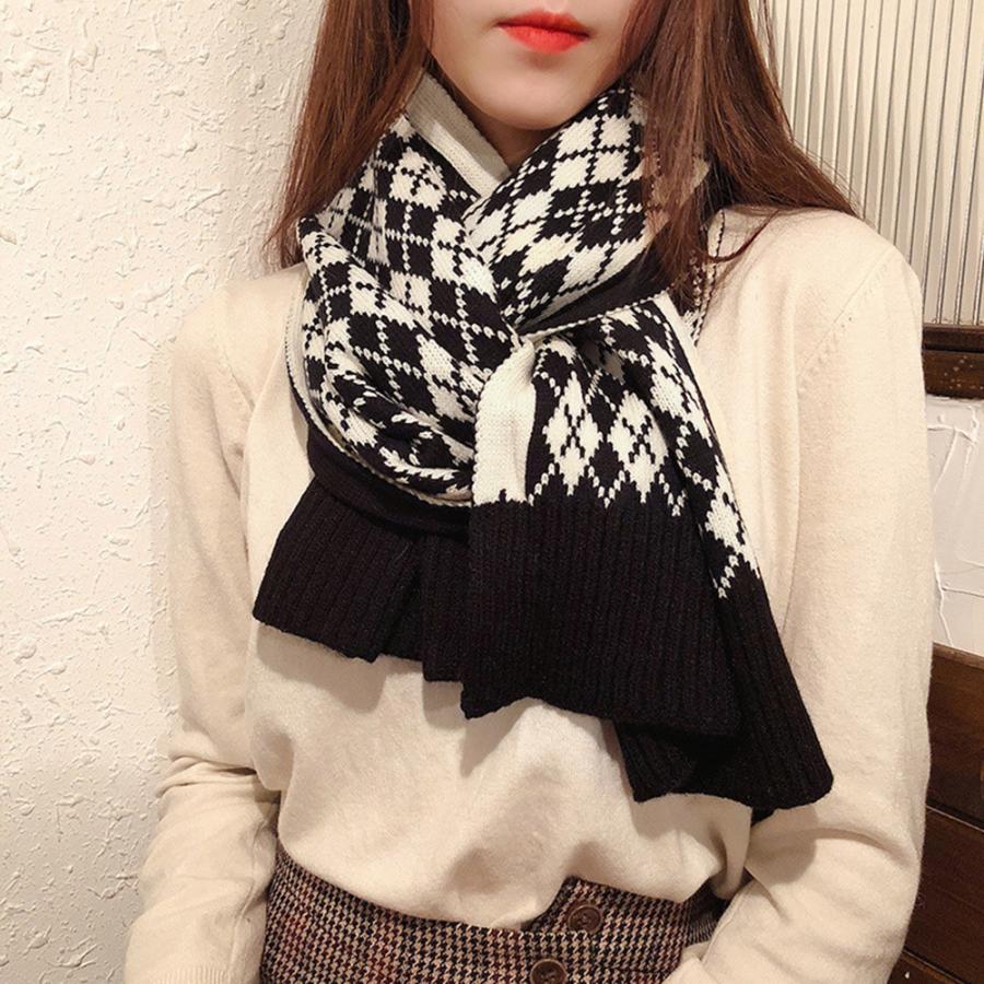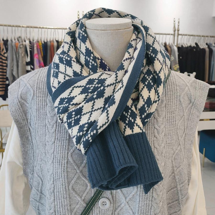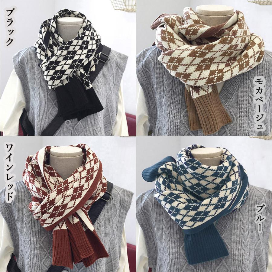 オシャレ度をUPしてくれるアーガイル柄ニットマフラー