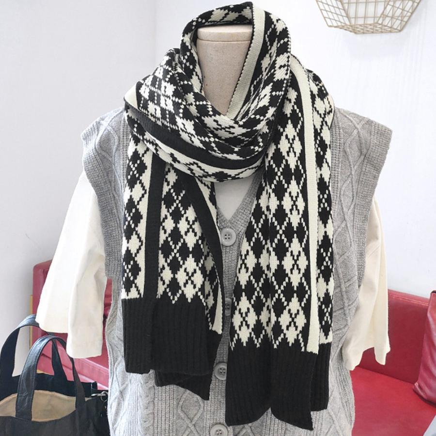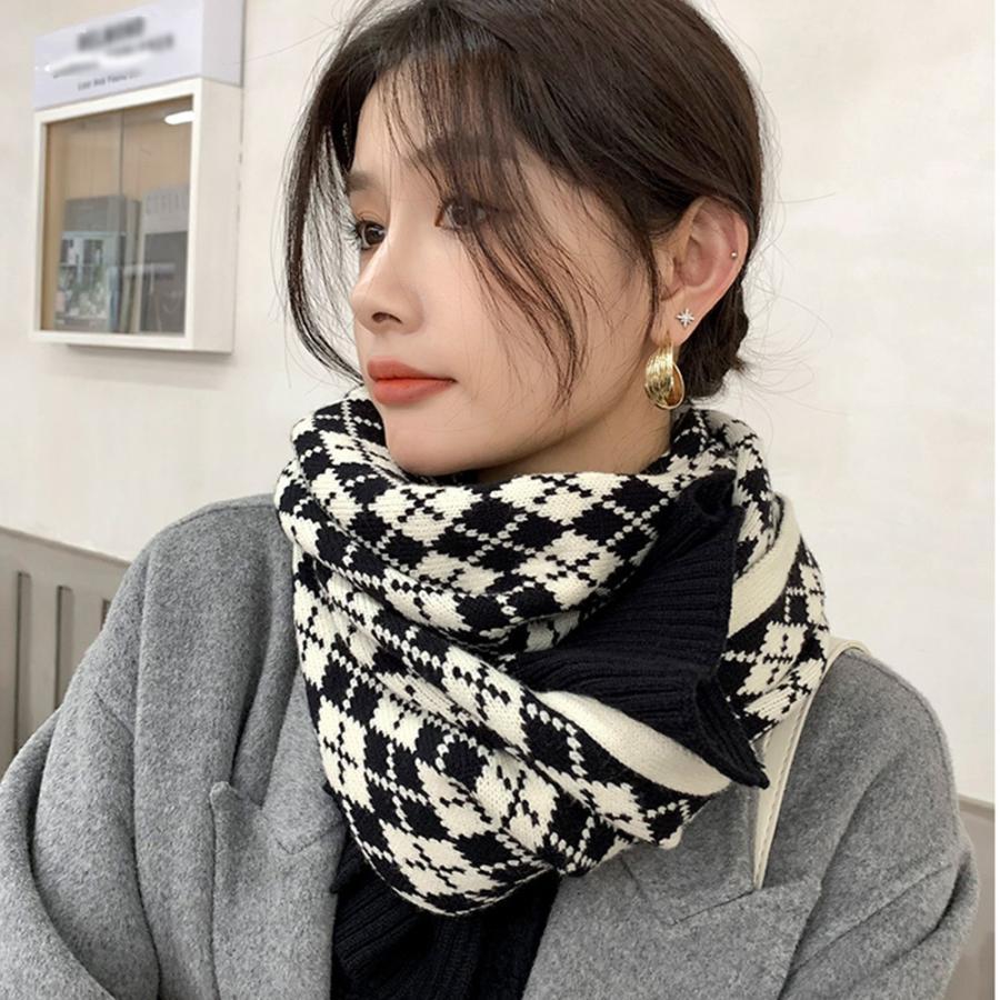 バイカラー菱形格子 マフラー 男女兼用 クリスマスギフト