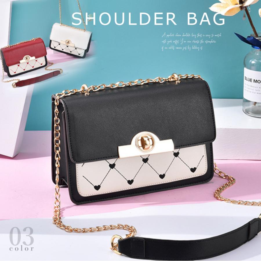 チェーンバッグ 配色 肩掛けかばん 可愛い スクエアカバン ポシェット バイカラー