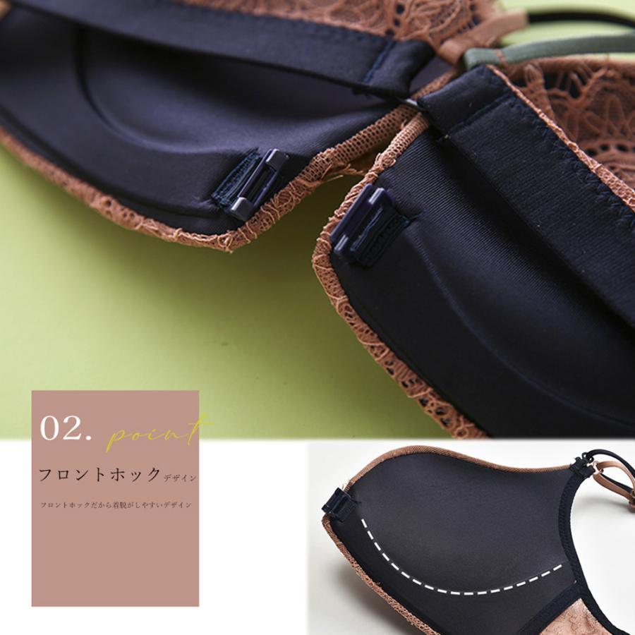 3/4カップ、フロントホック、肩紐取外し不可、ワイヤー:なし