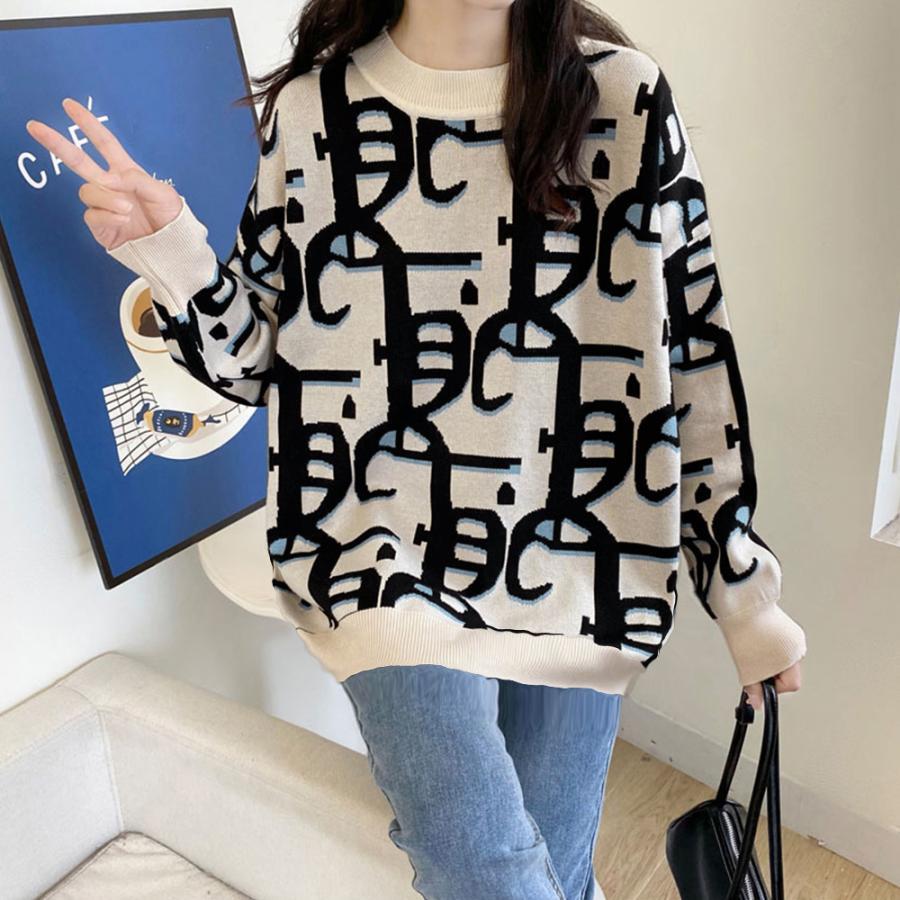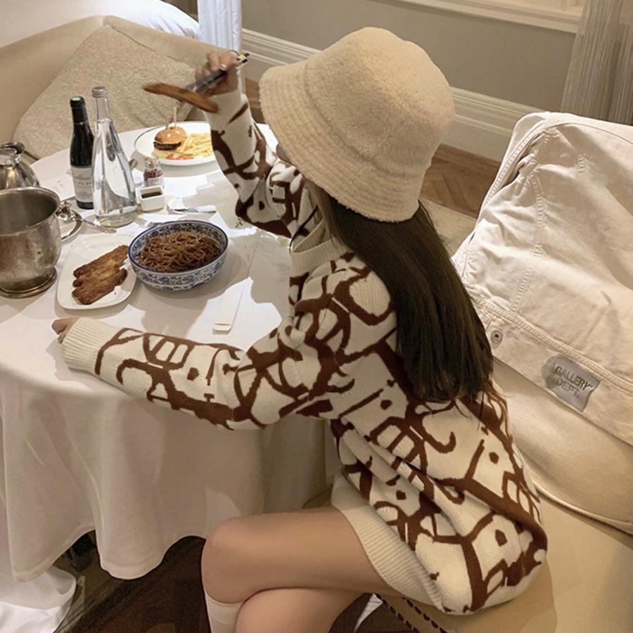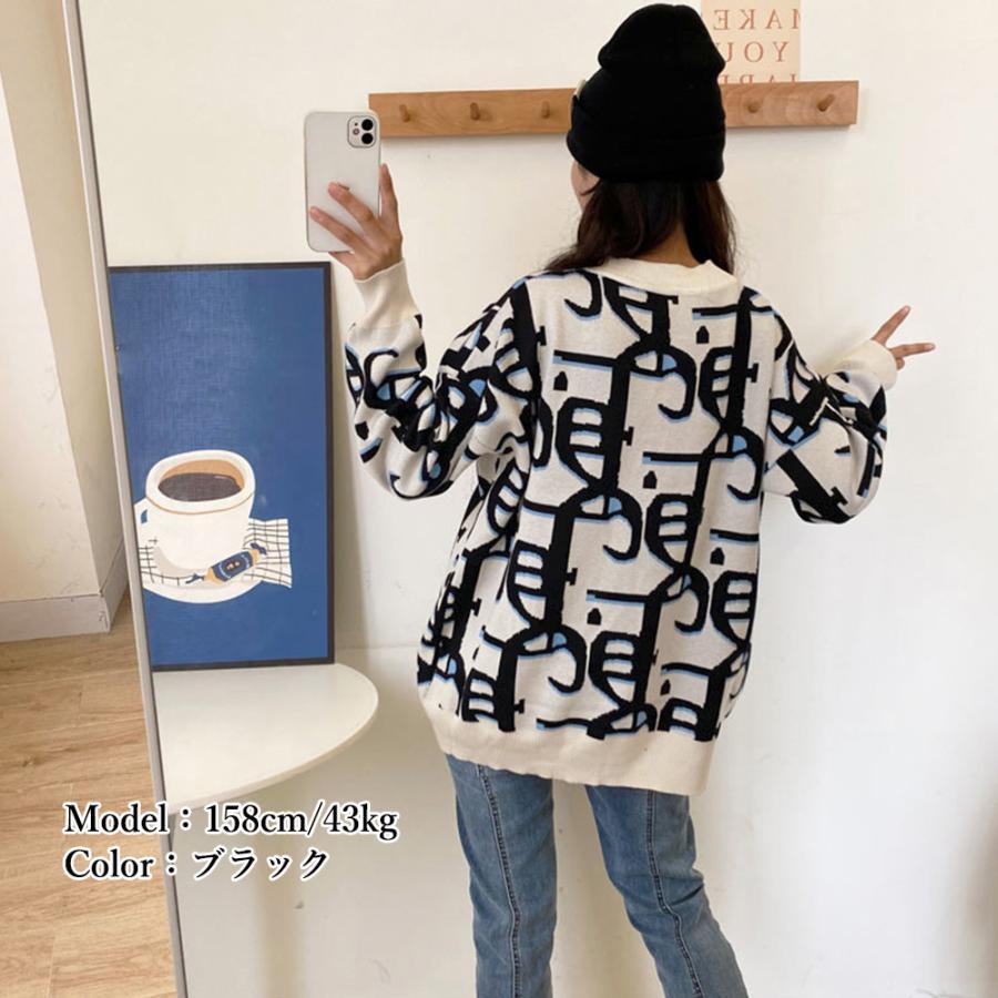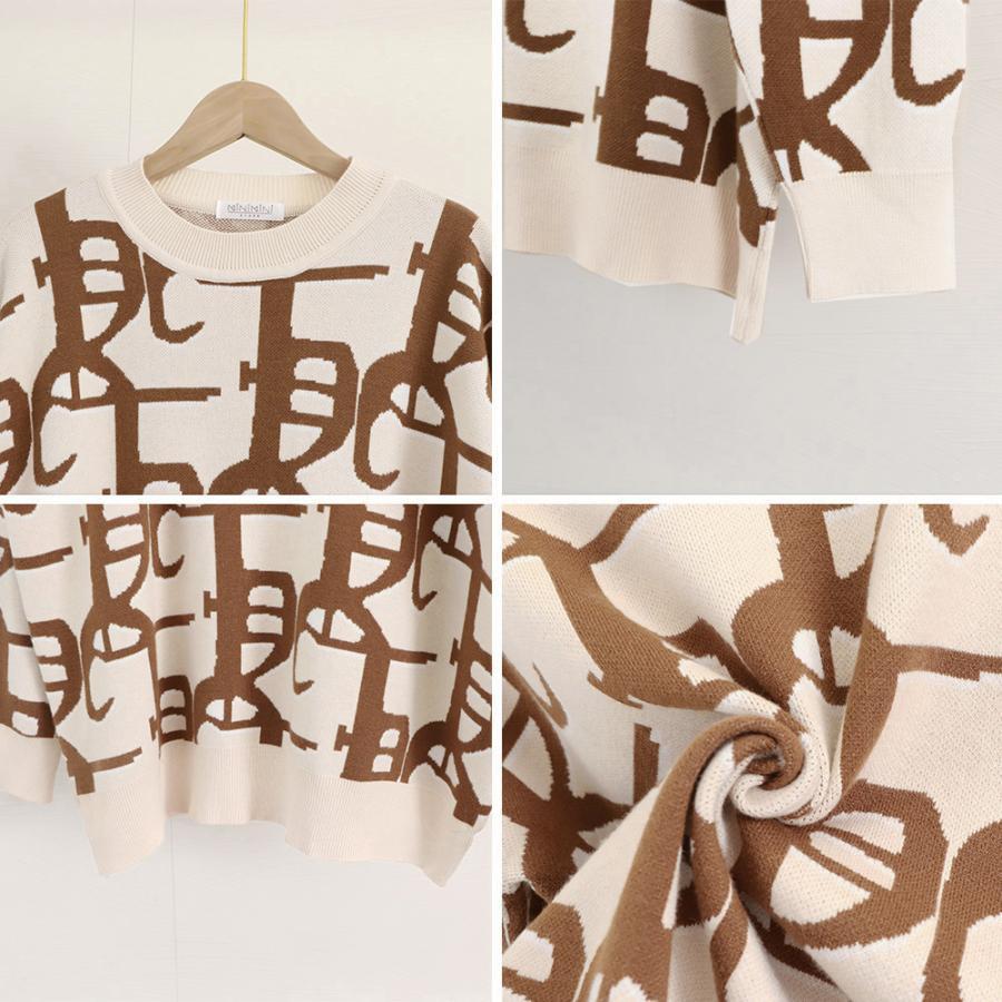モノグラム柄の秋冬らしい配色がお洒落な愛されニットトップス
