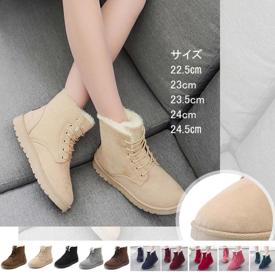 レディース フラットヒール 編み上げ 裏起毛ブーティ あったか ローヒール もこもこ 靴 秋冬新作 ムートンシューズ