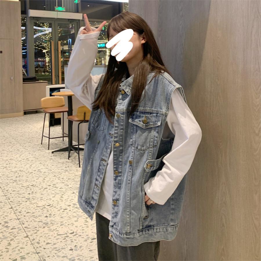 ゆったり ノースリーブ デニムジャケット 袖なし Gジャン カジュアル 春秋冬アウターオルチャン オーバーサイズトップス