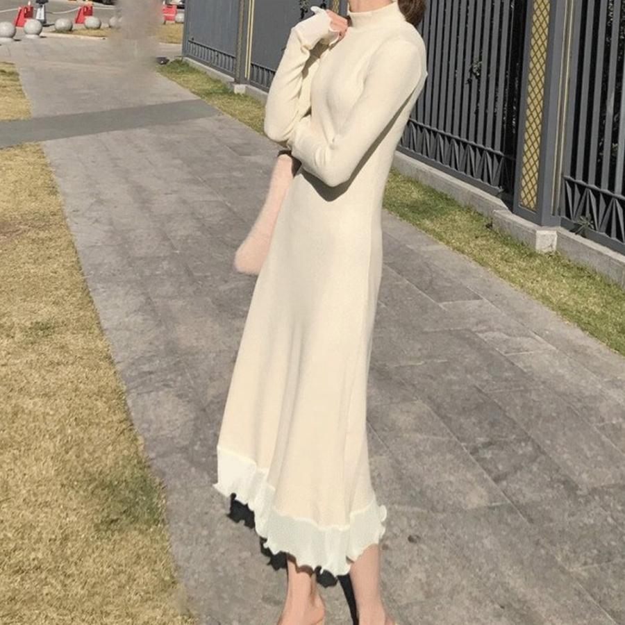 ボディラインを綺麗にみせ、女性を美しくみせるニットロングワンピース