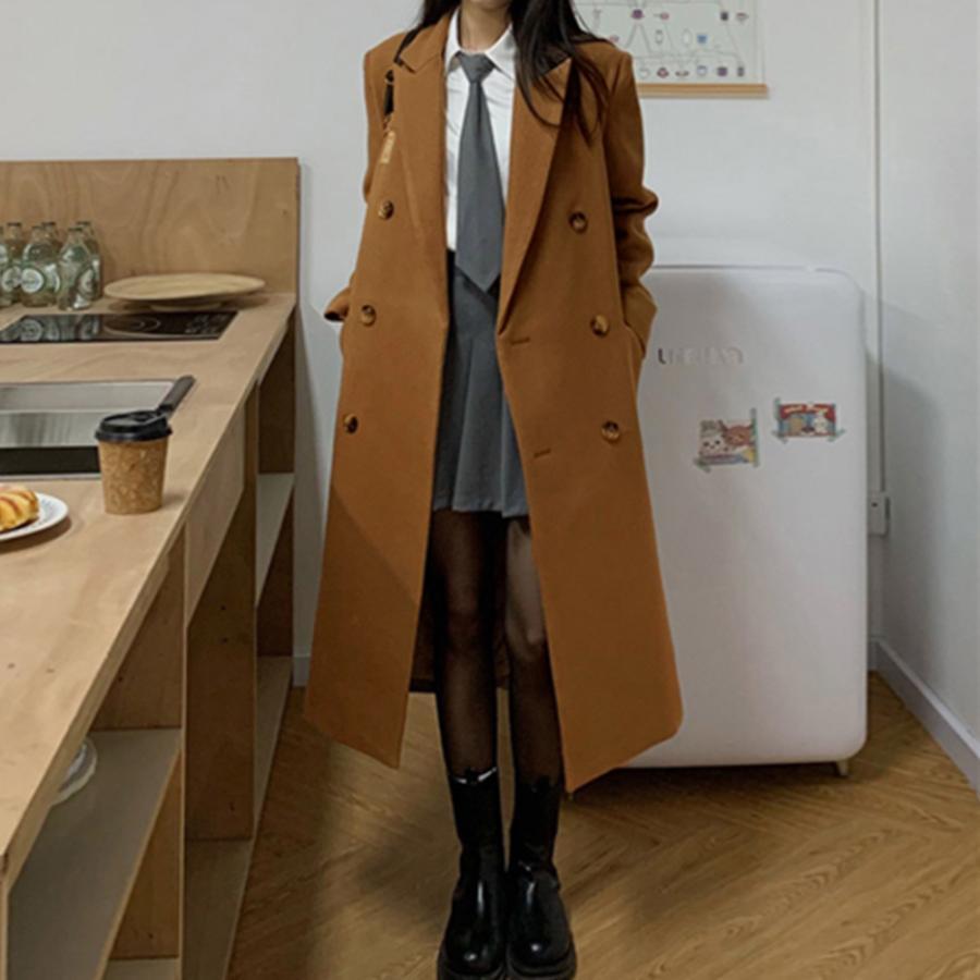 オシャレ ダブル ロングコート中綿ジャケット オーバーサイズ 防寒アウター あったかいトレンチコート オフィスカジュアル
