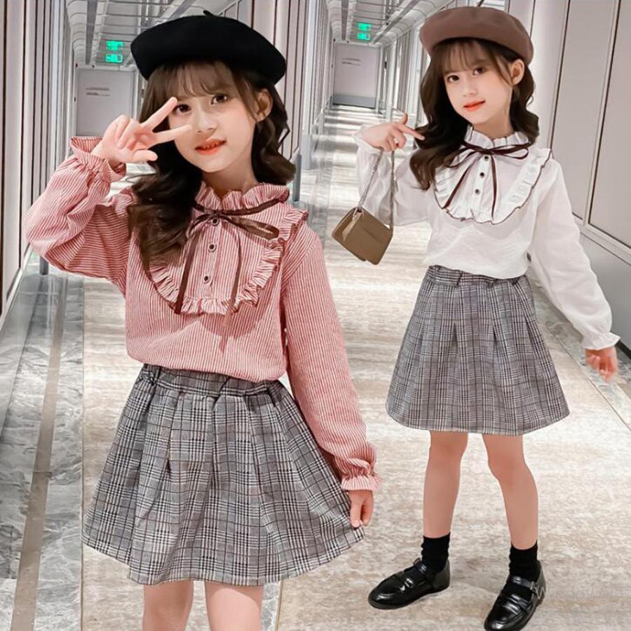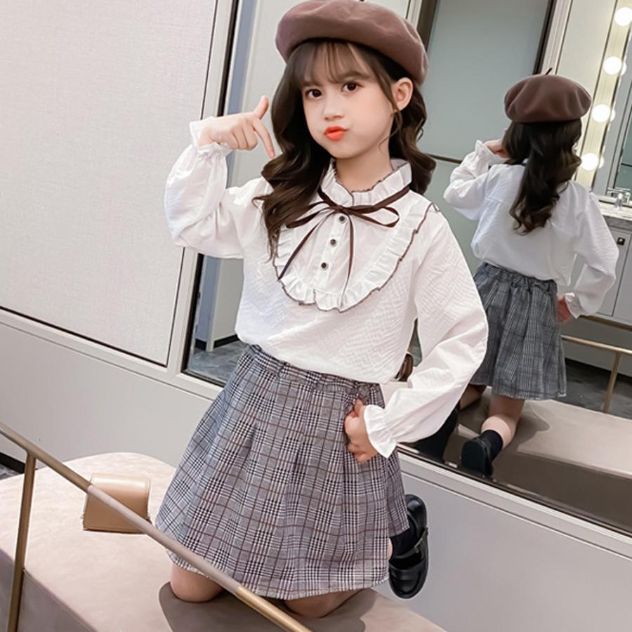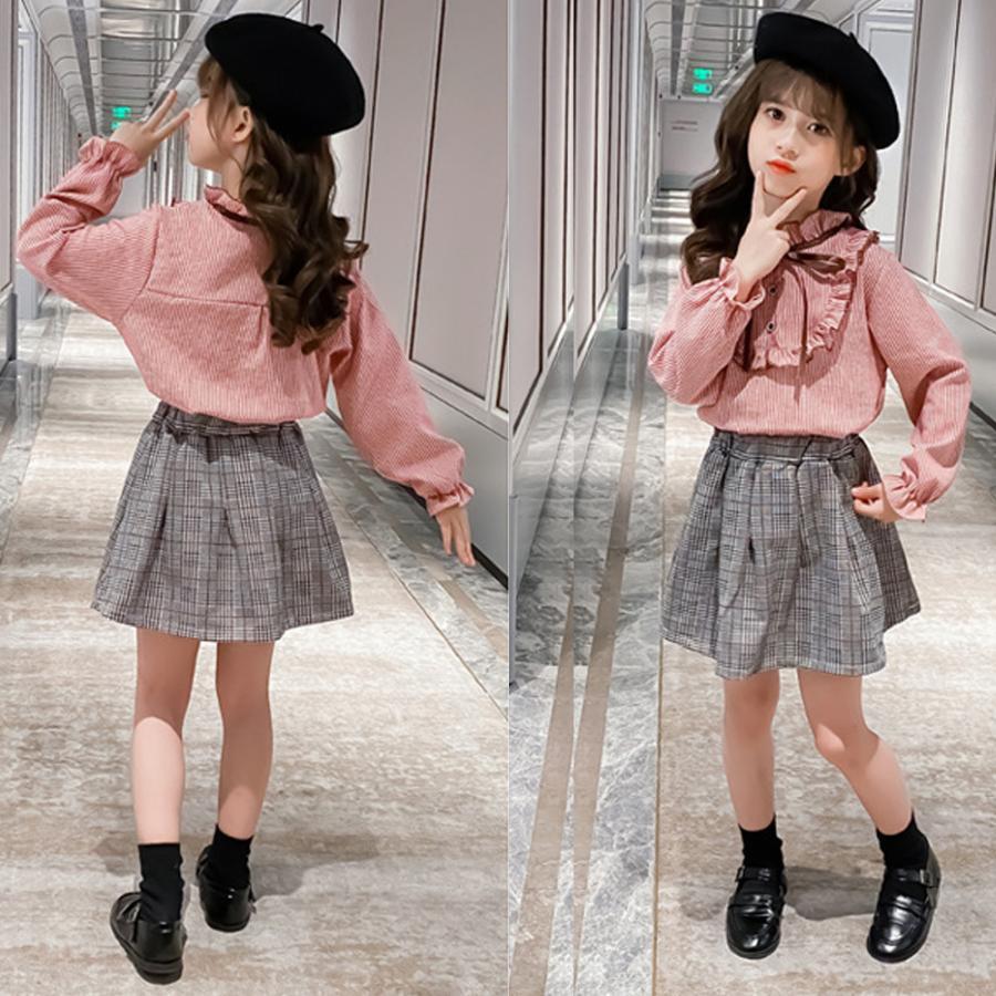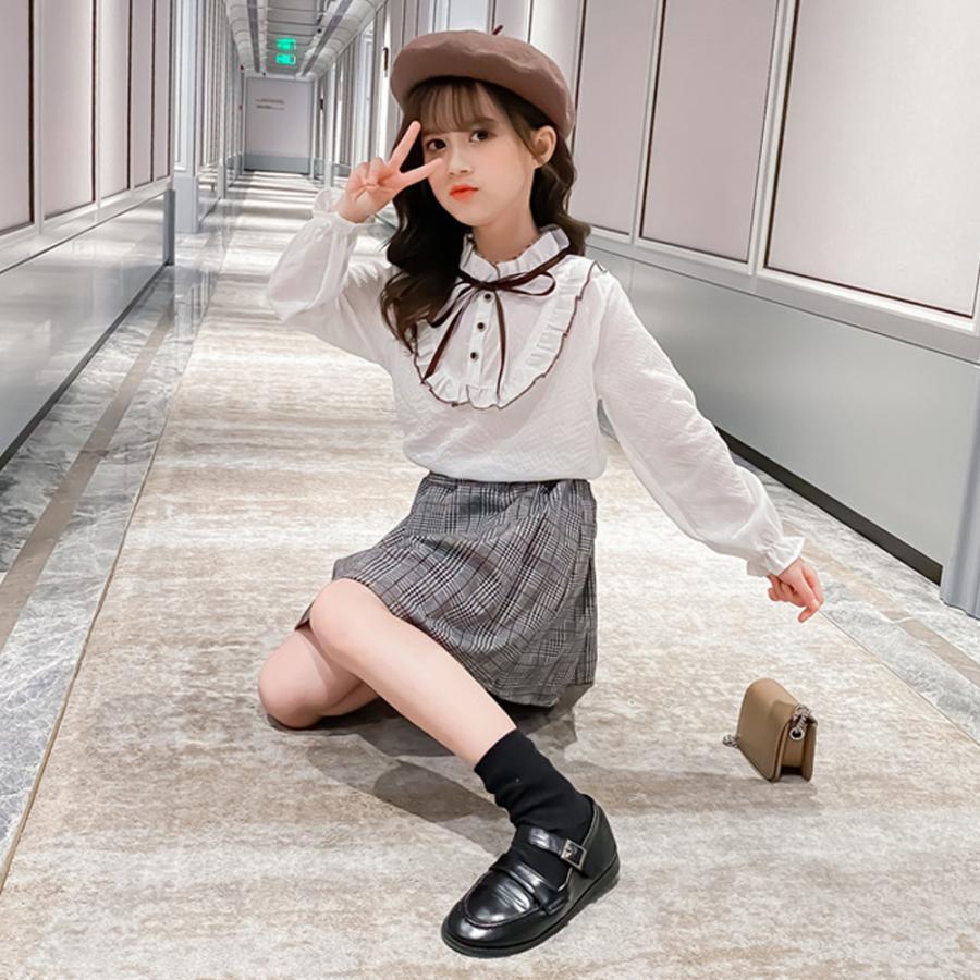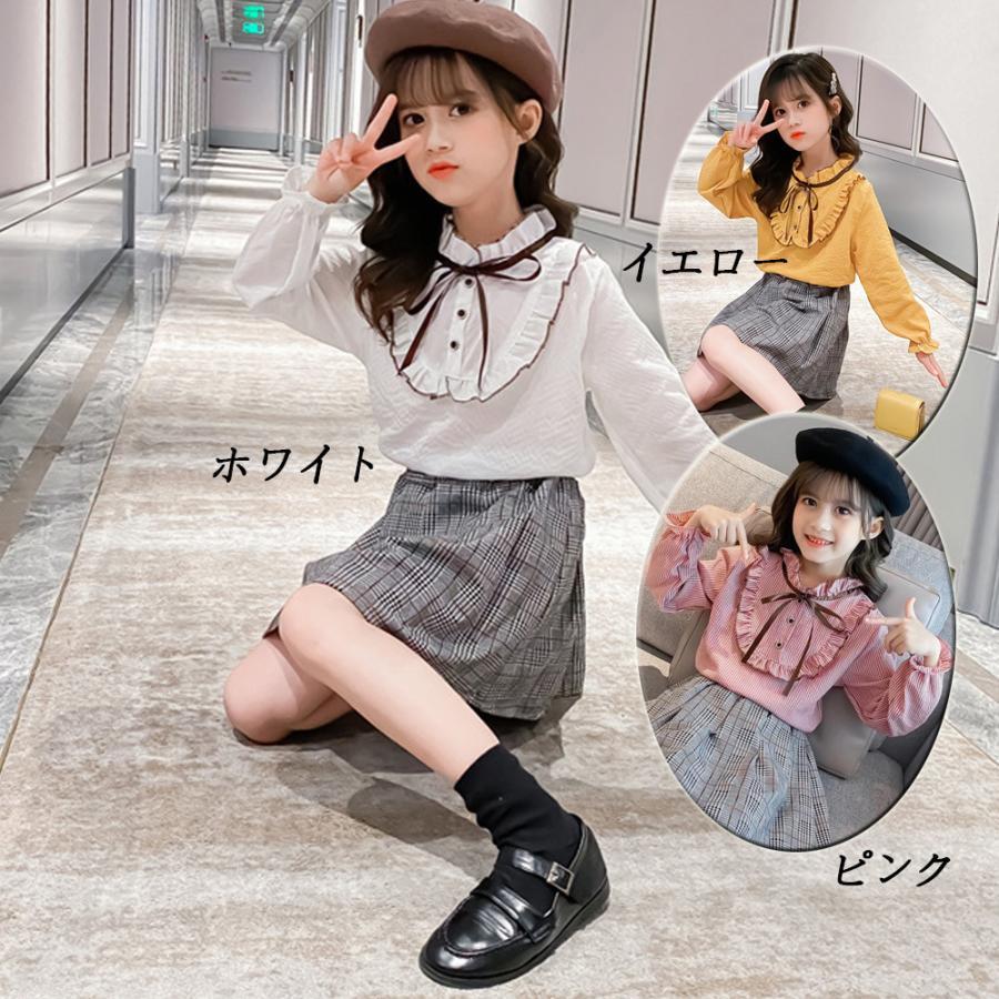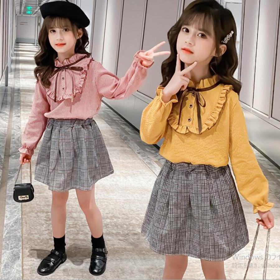 (子供)その他 | 秋冬 カジュアル スカート 2点セット セットアップ ミニチェック柄スカート 通学着 おしゃれ 女の子 長袖 小学生 シャツ キッズ