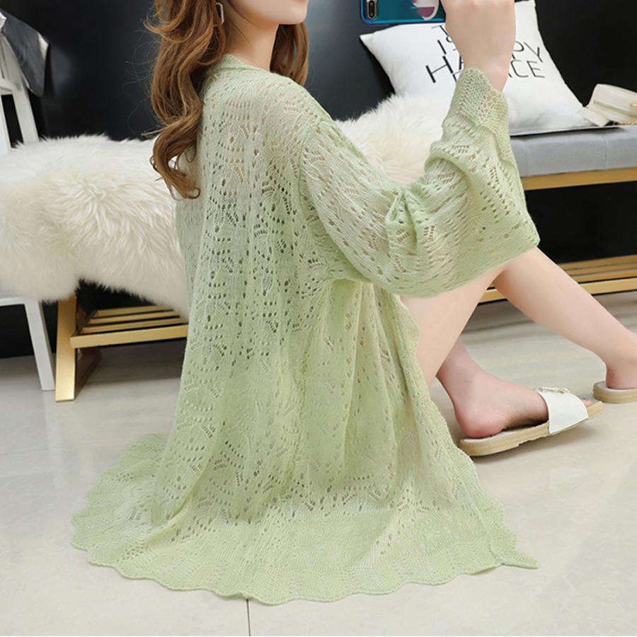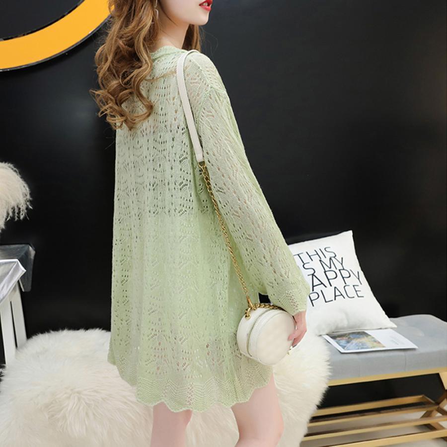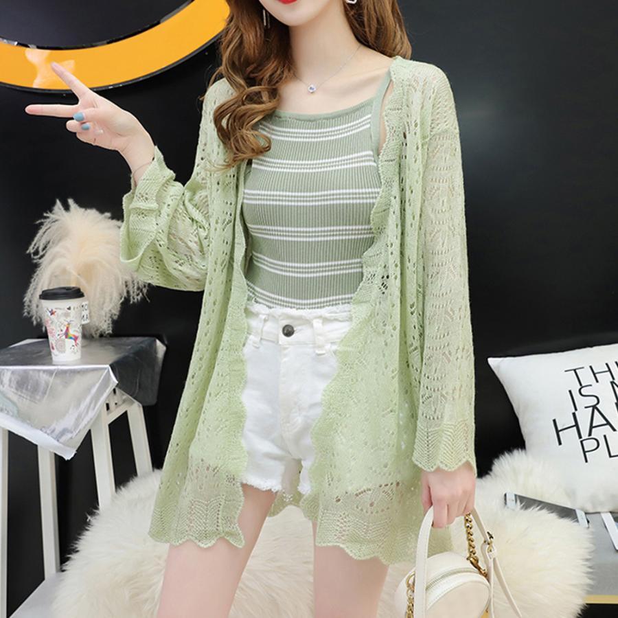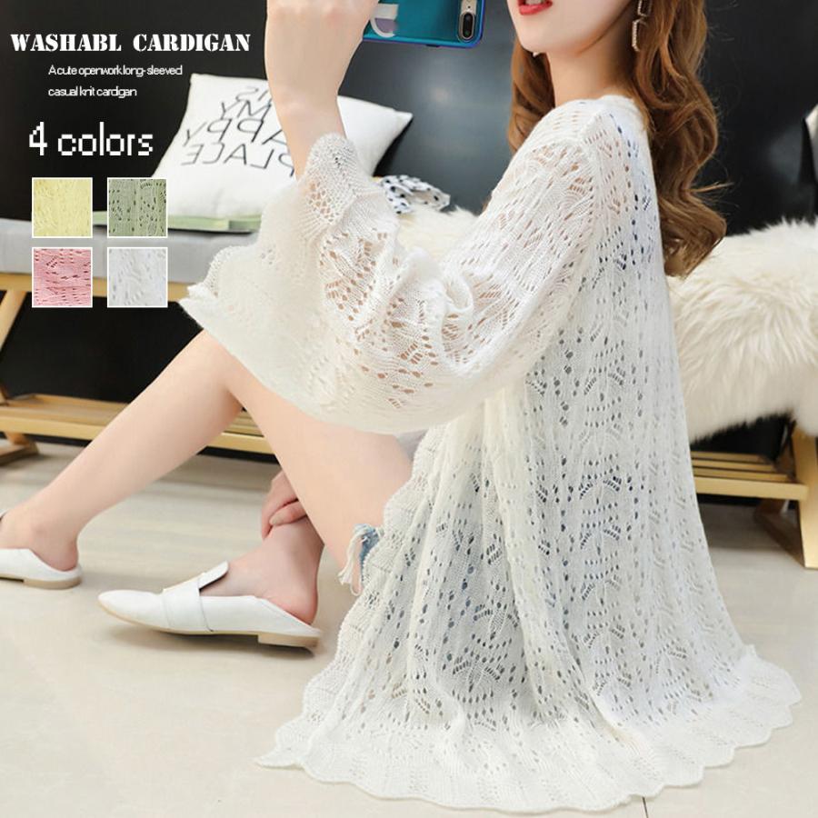 定番のカラー全4色、可愛い透かし編み長袖カジュアルニットカーディガンです。