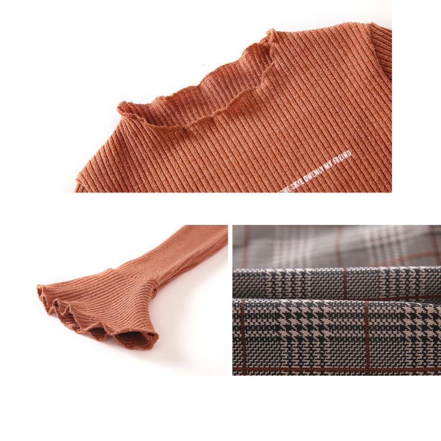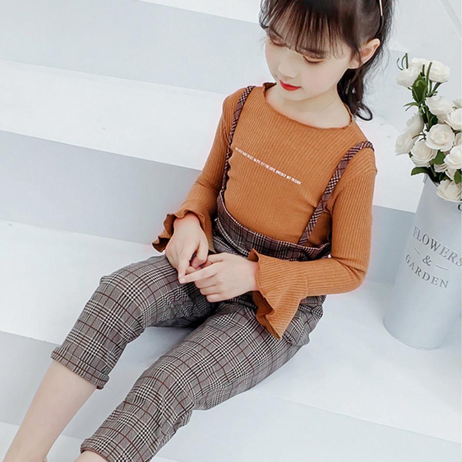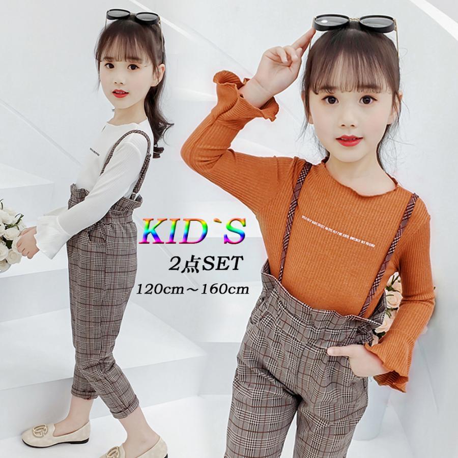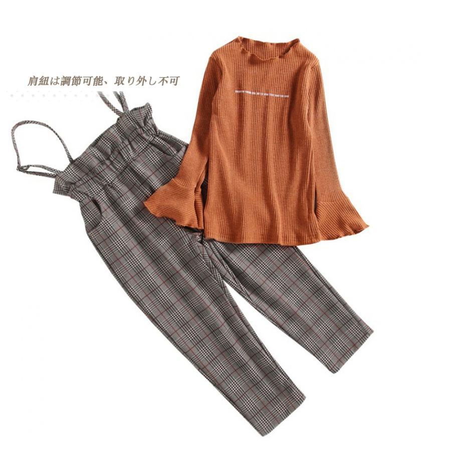 (子供)その他 | ズボン 2点セット 長ズボン セットアップ トップス 長袖 子供服 キッズ チェック柄 ブラウン 女の子 ワイドパンツ