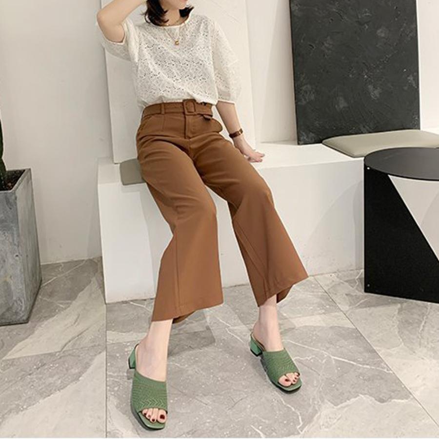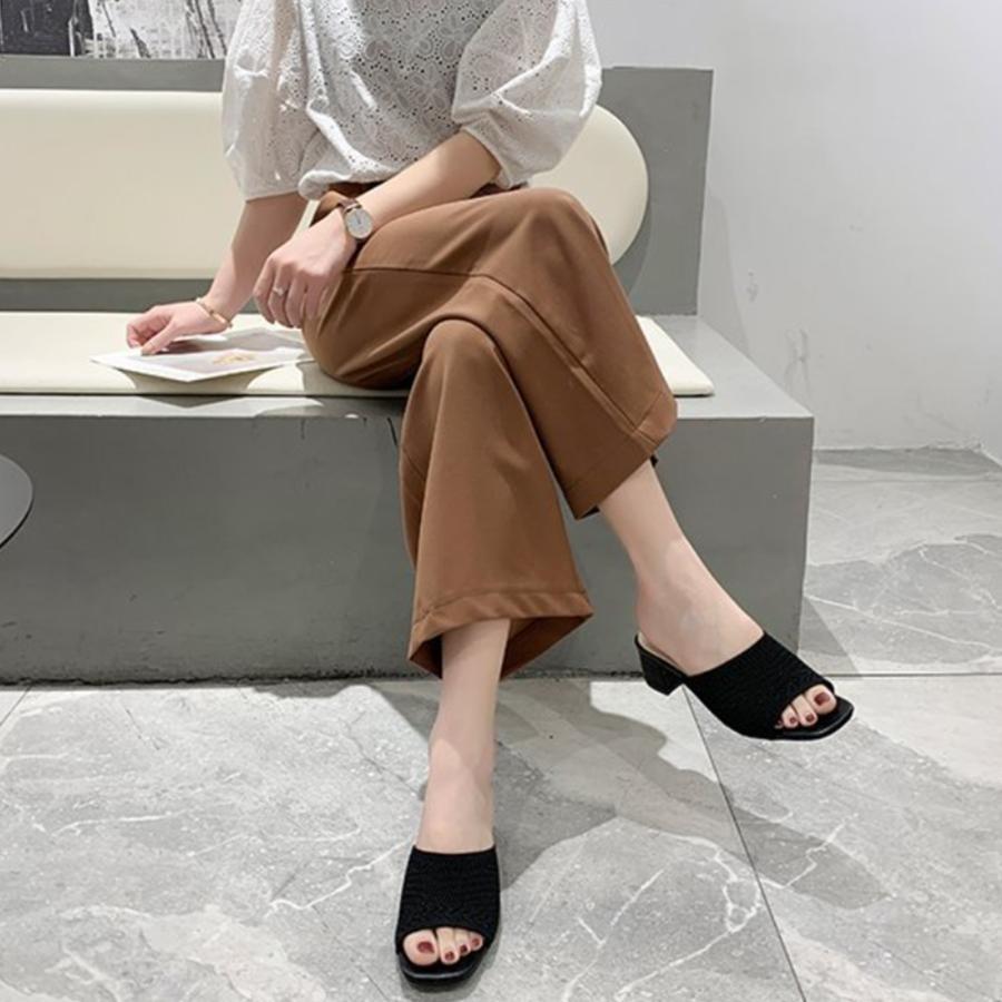 ワイドなスクエアトゥでモード感があり、足元をスタイリッシュに仕上げてくれるミュールサンダル