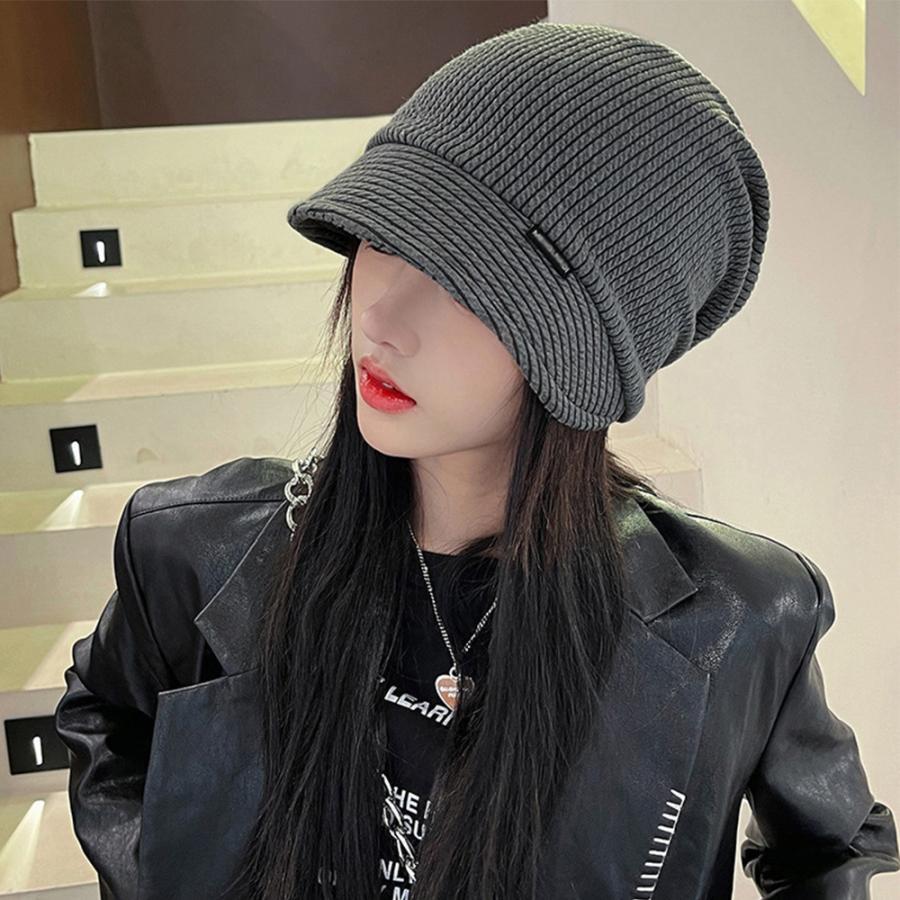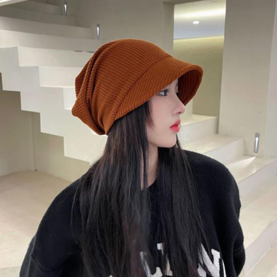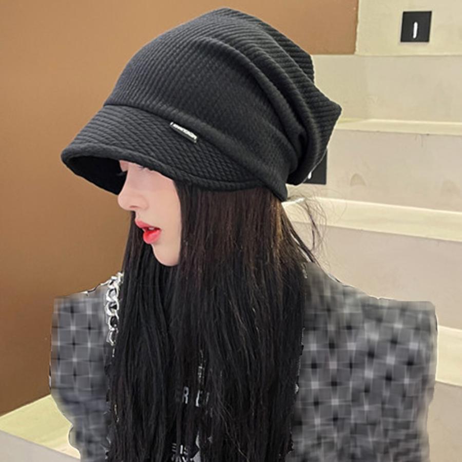 ニット帽 くしゅくしゅ ニットキャップ つば付き 韓国風 ハット帽 無地 カジュアル ハンチング帽 カジュアル ぼうし黒