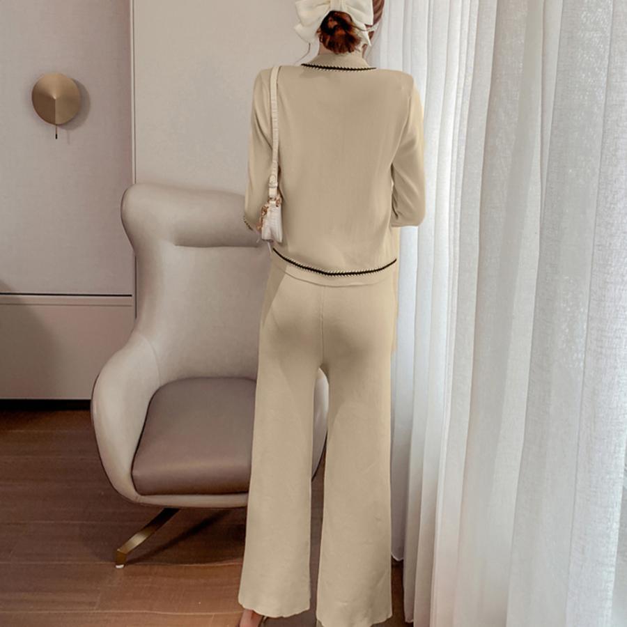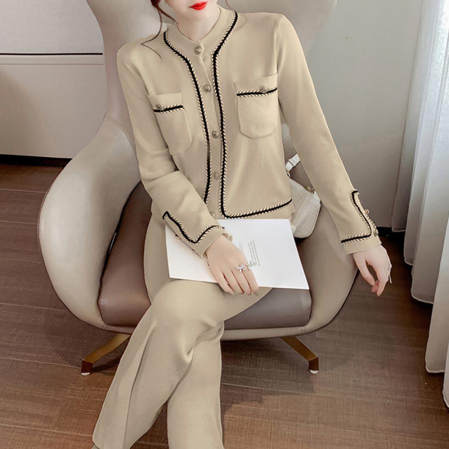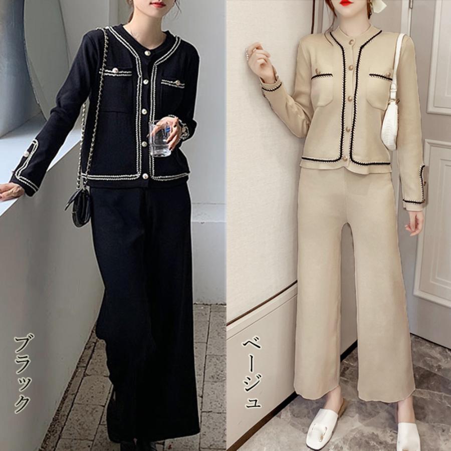 韓国 長袖 セットアップ ニットトップス ニットワイトパンツ 上下セット 大人 アンサンブル キャリアウーマン