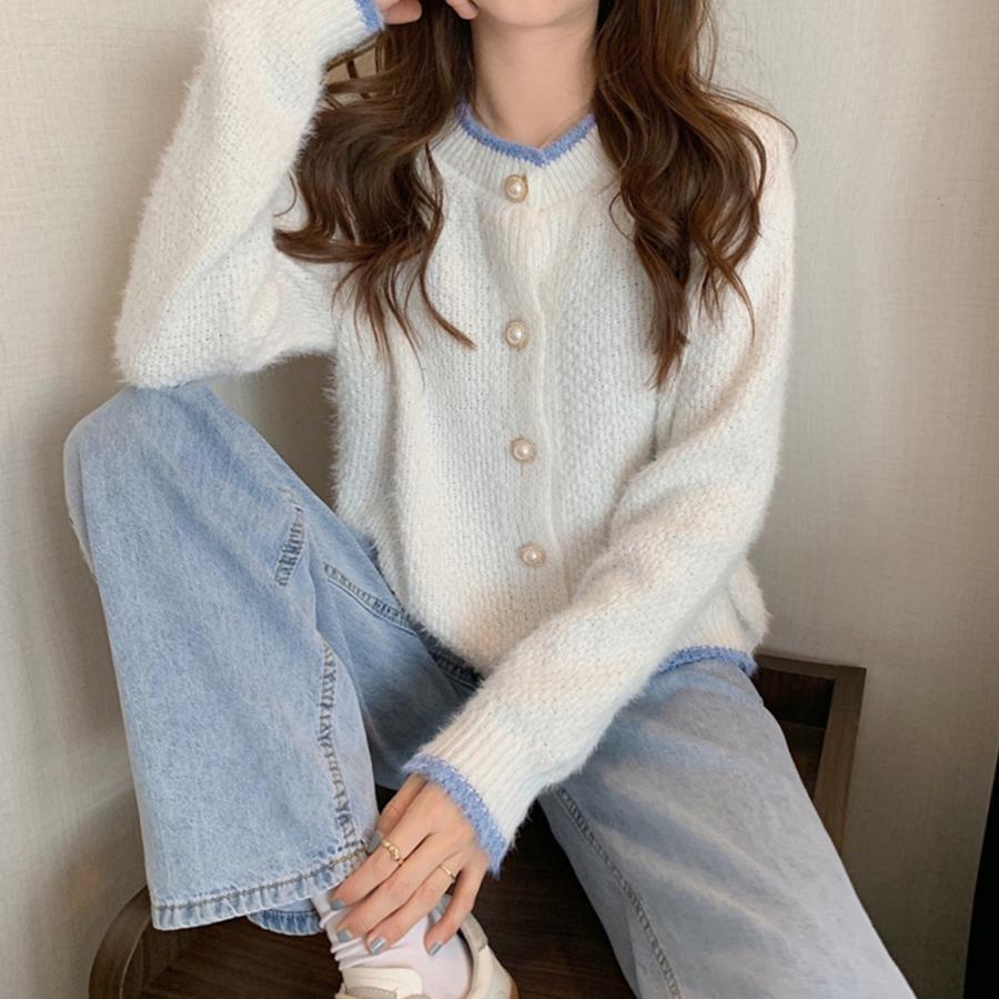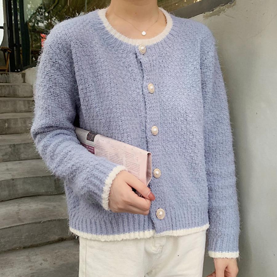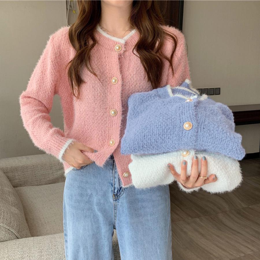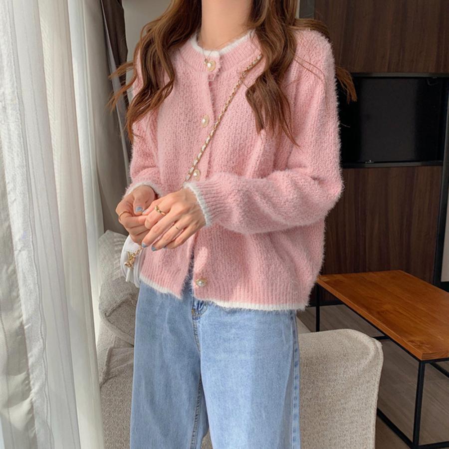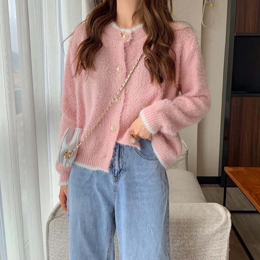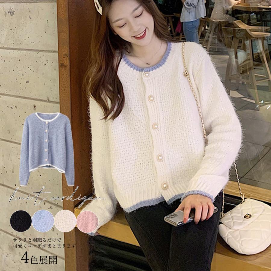 前開き 羽織 長袖 ニットセーター 無地 カーディガン