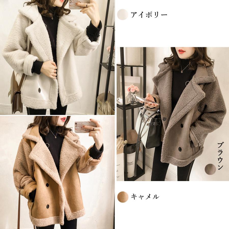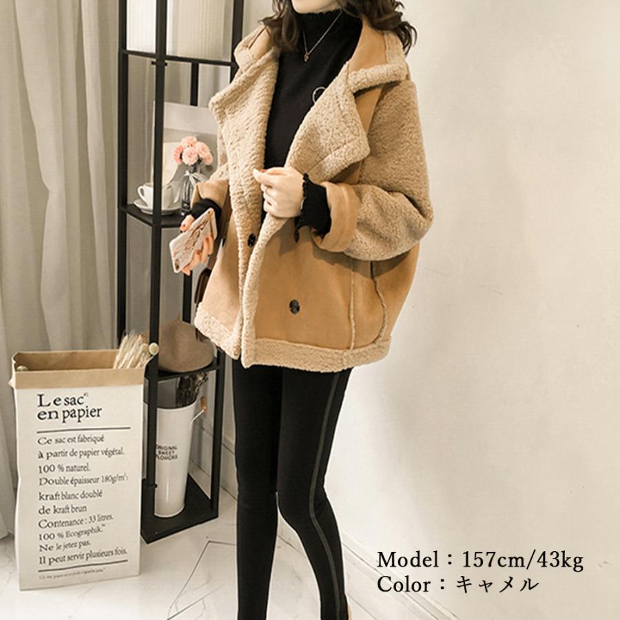 レディース 裏起毛ジャンパー 厚手 フリースブルゾン もこもこ ボアコート 暖かい フェイクムートン アウター冬 羽織