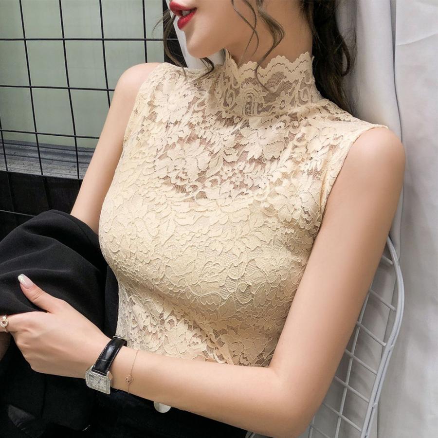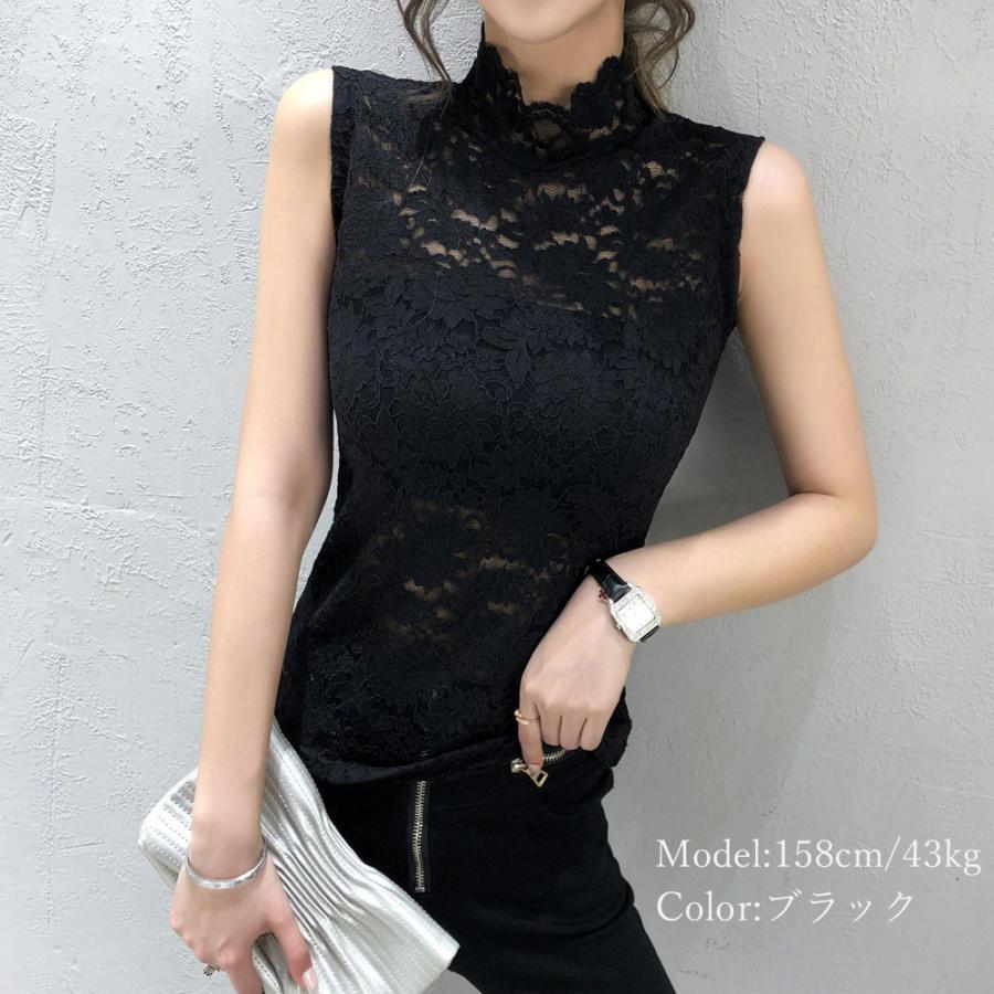 透かし編みトップス | 大人可愛い 重ね着 総レース スカラップ 花柄 エレガント セクシー ハイネック インナー レディース タンクトップ トップス