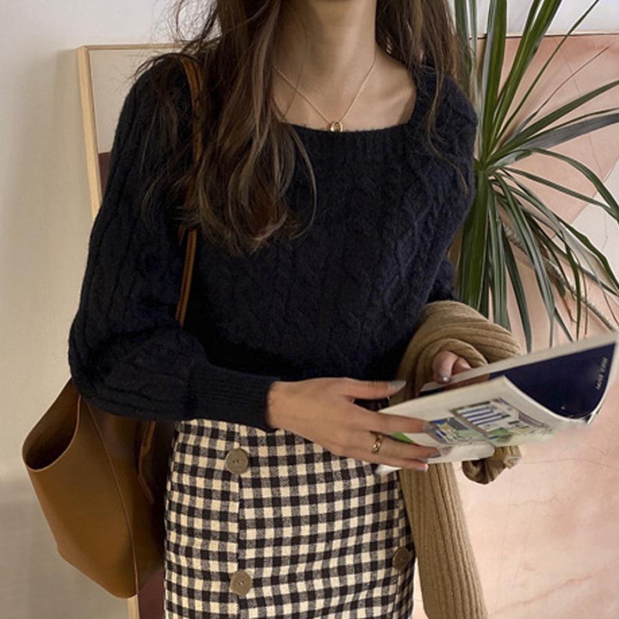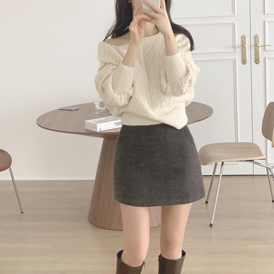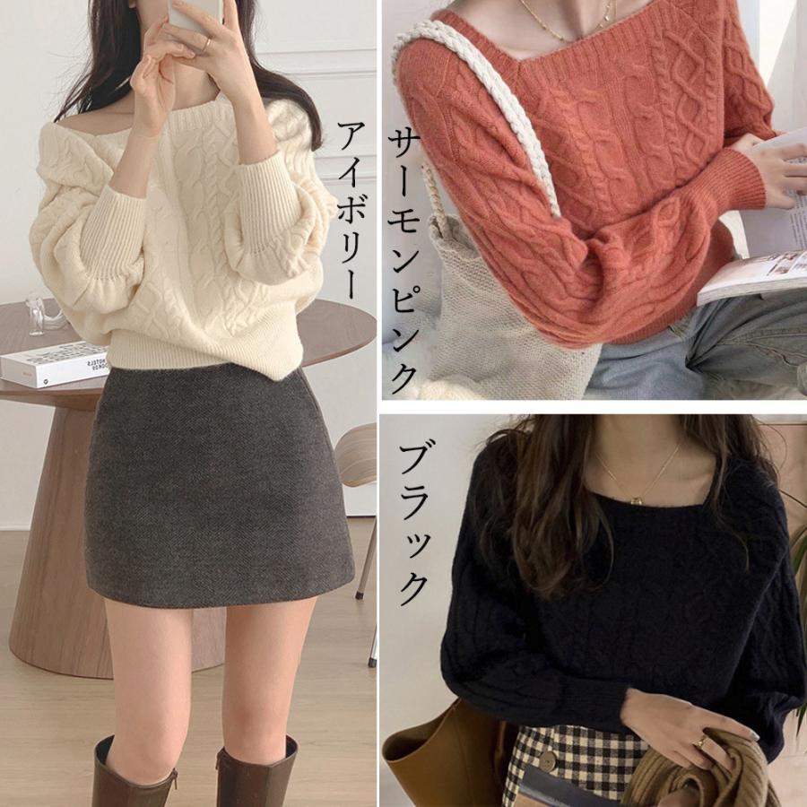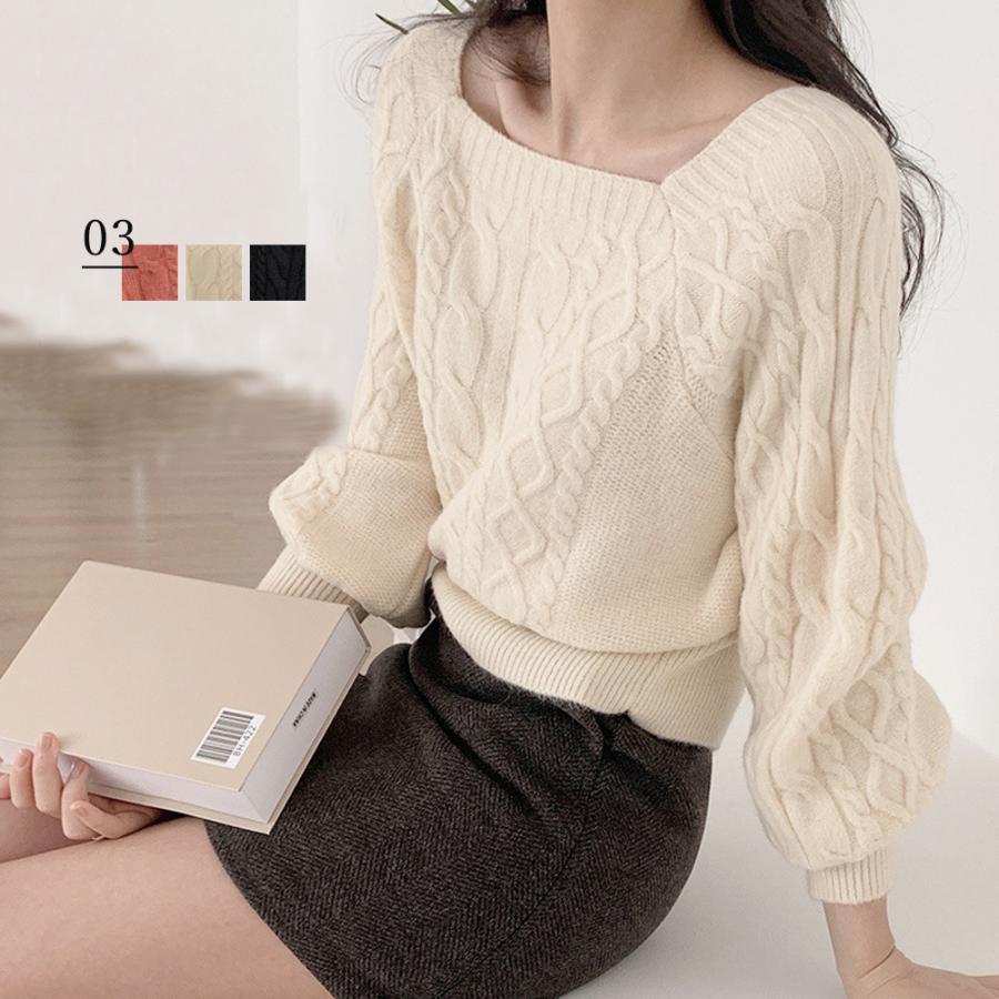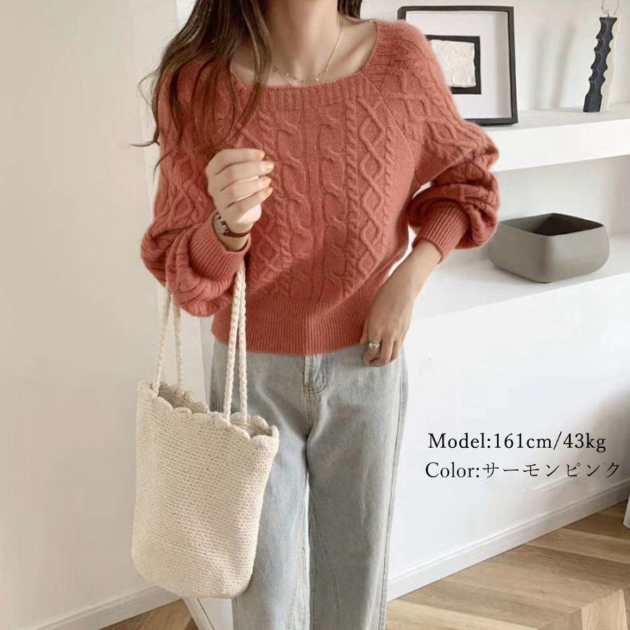 ショート丈 ニットトップス ボリューム袖 おしゃれ ニットセーター カジュアル