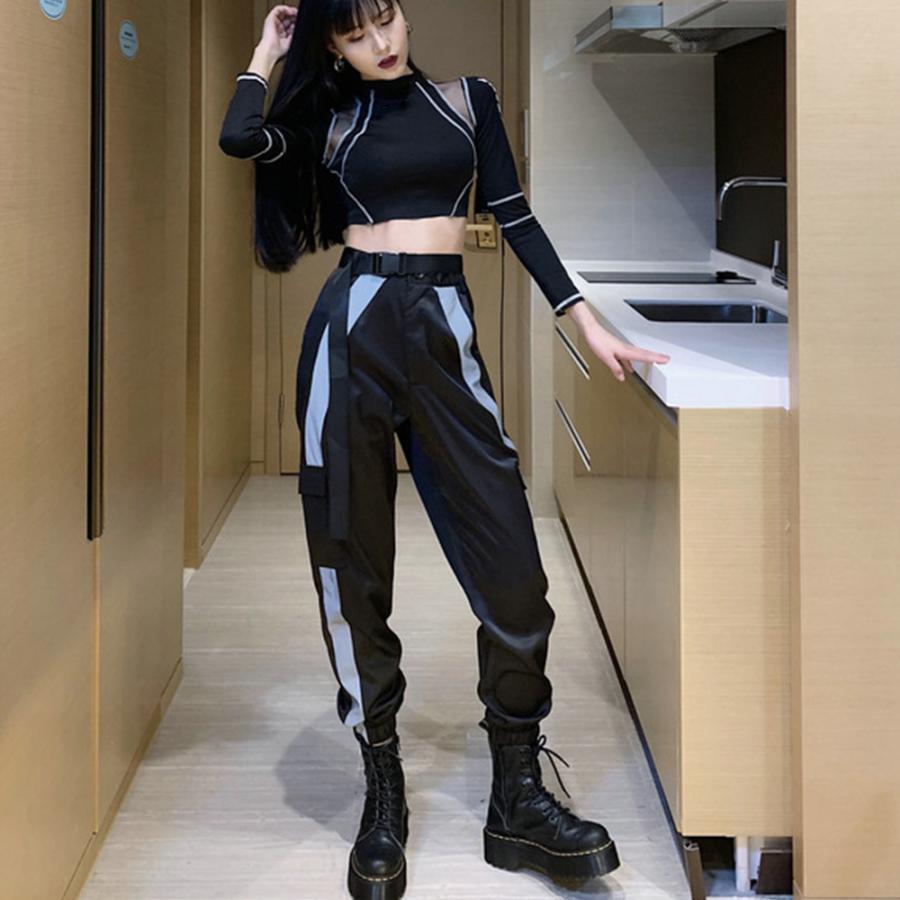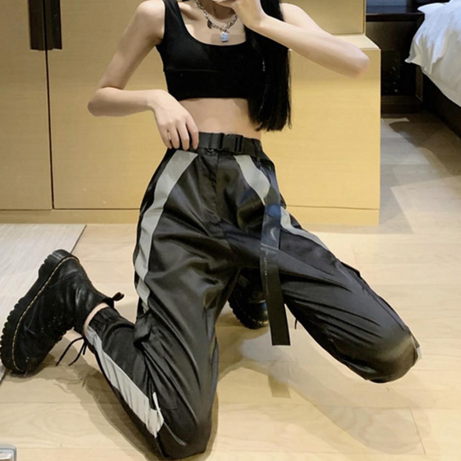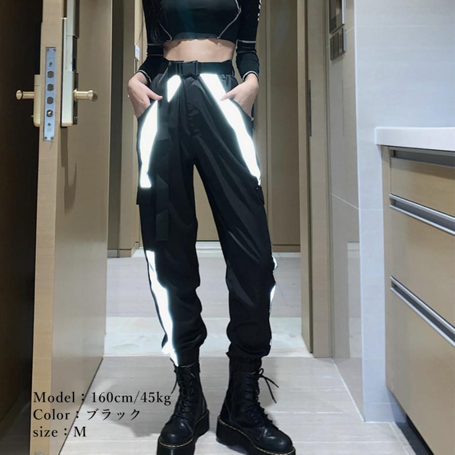 光る 反射 ロングパンツ ベルト付き 原宿系 ダンス 衣装 韓国風 トランクパンツ 個性派