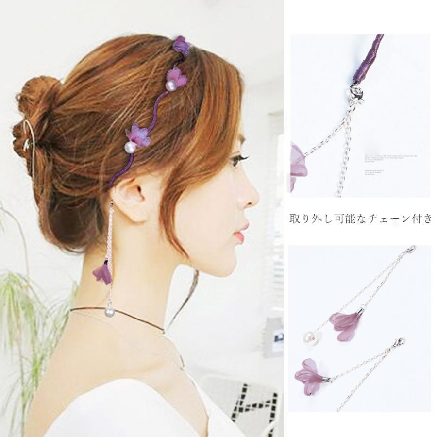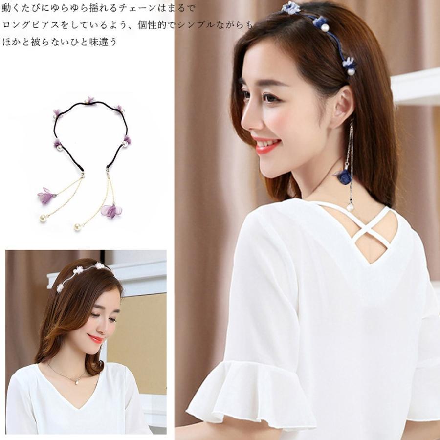 ネックレス | 2way ヘッドバンド 髪飾り カチューシャ パール レディース 女性 ヘアアクセサリー ヘアバンド 花モチーフ チャーン付き