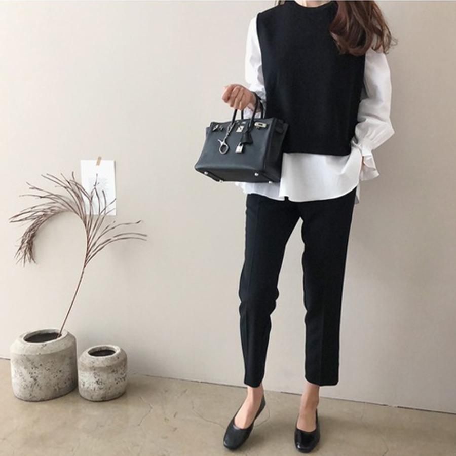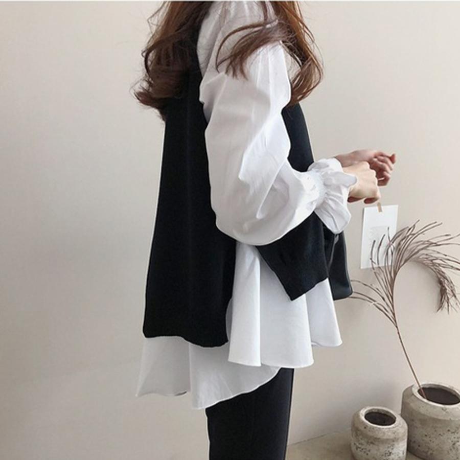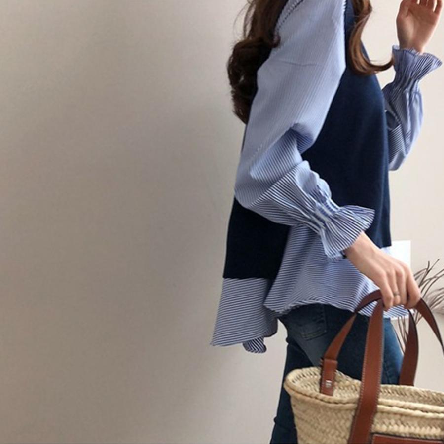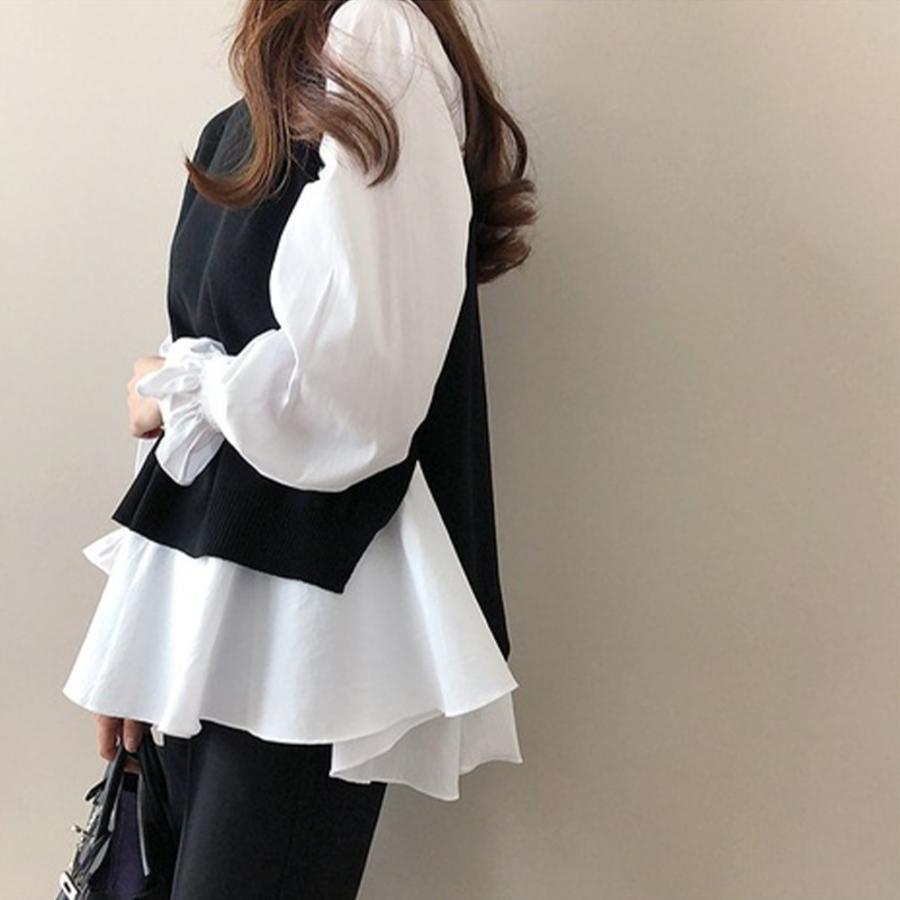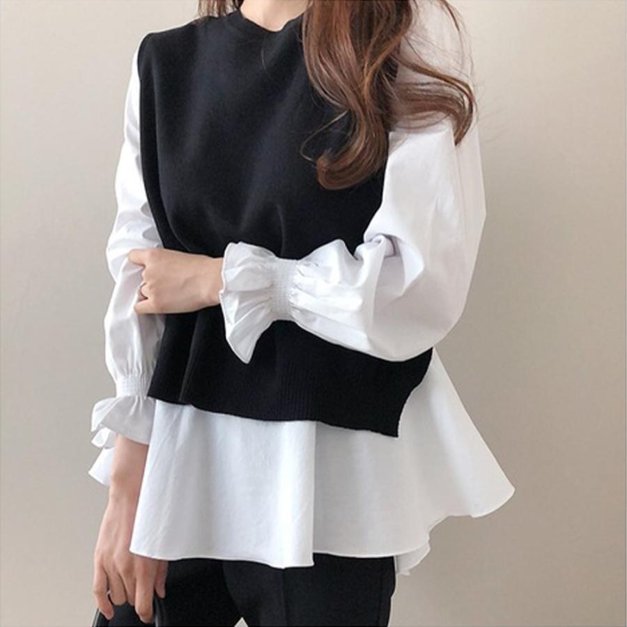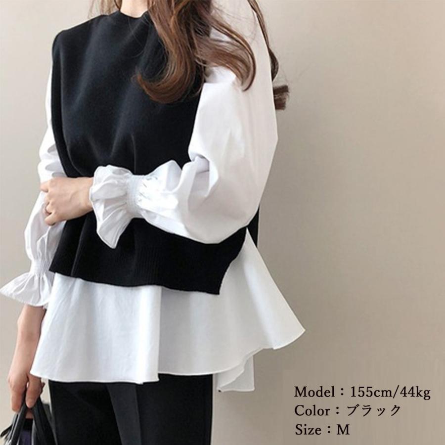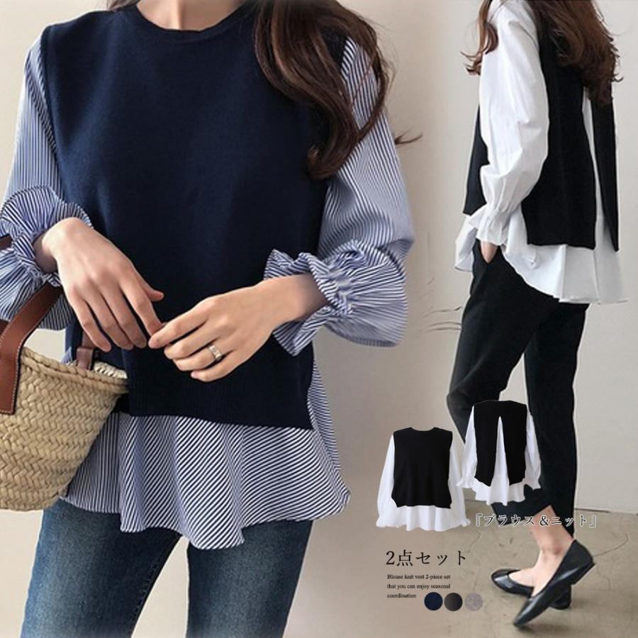 旬なコーディネートを楽しめるブラウスニットベスト2点セット