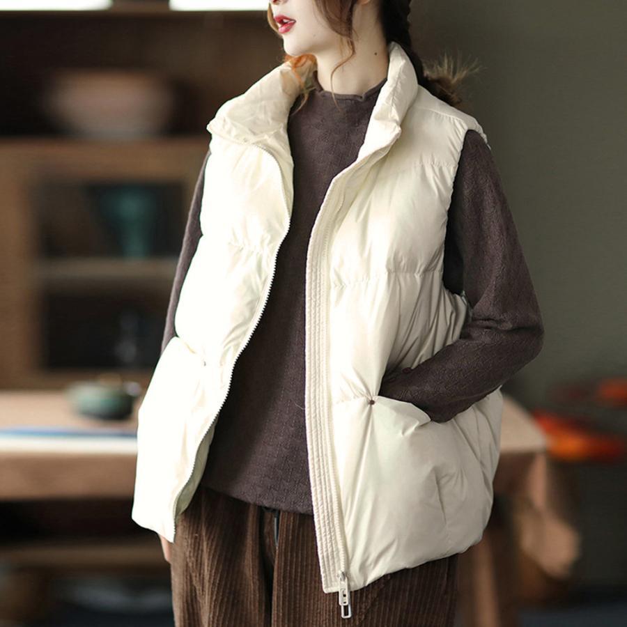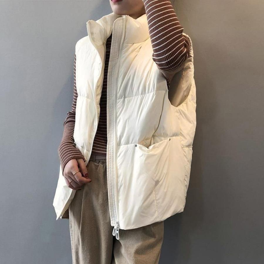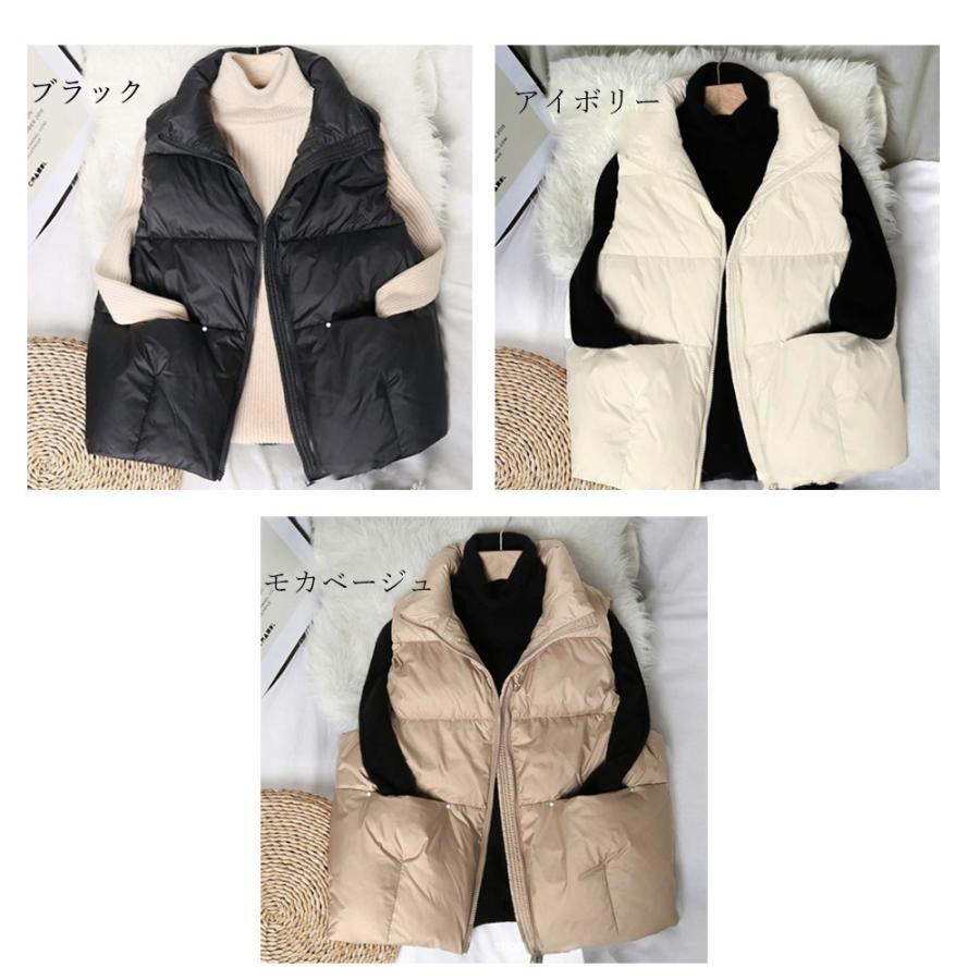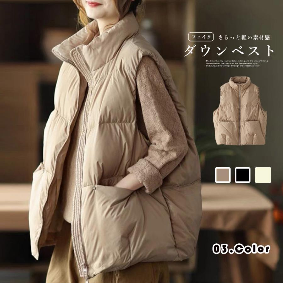 ノースリーブ ダウンジャケット 中綿ブルゾン ダブルファスナー ゆったり アウター 秋冬 ライトダウン インナーダウン