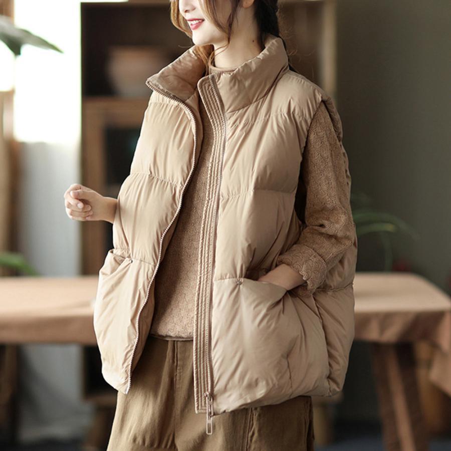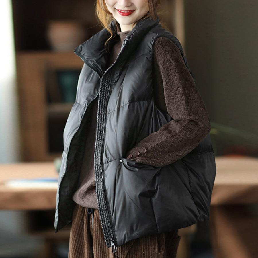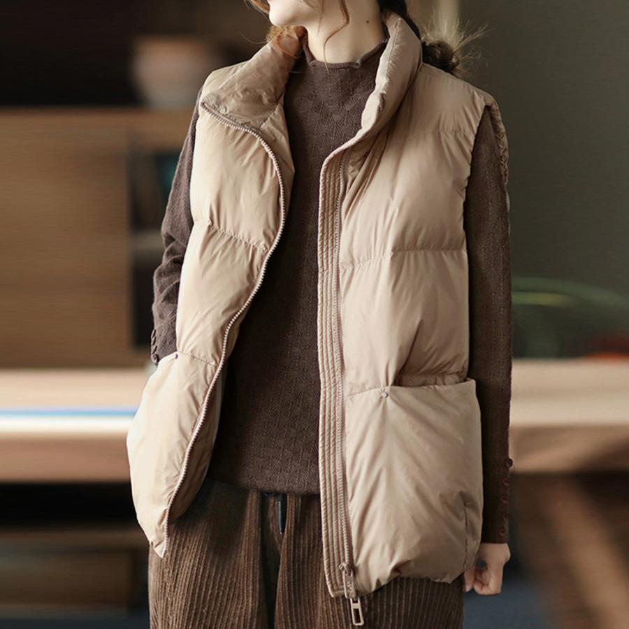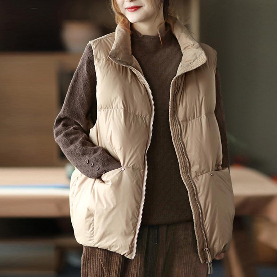 ノースリーブ ダウンジャケット 中綿ブルゾン ダブルファスナー ゆったり アウター 秋冬 ライトダウン インナーダウン