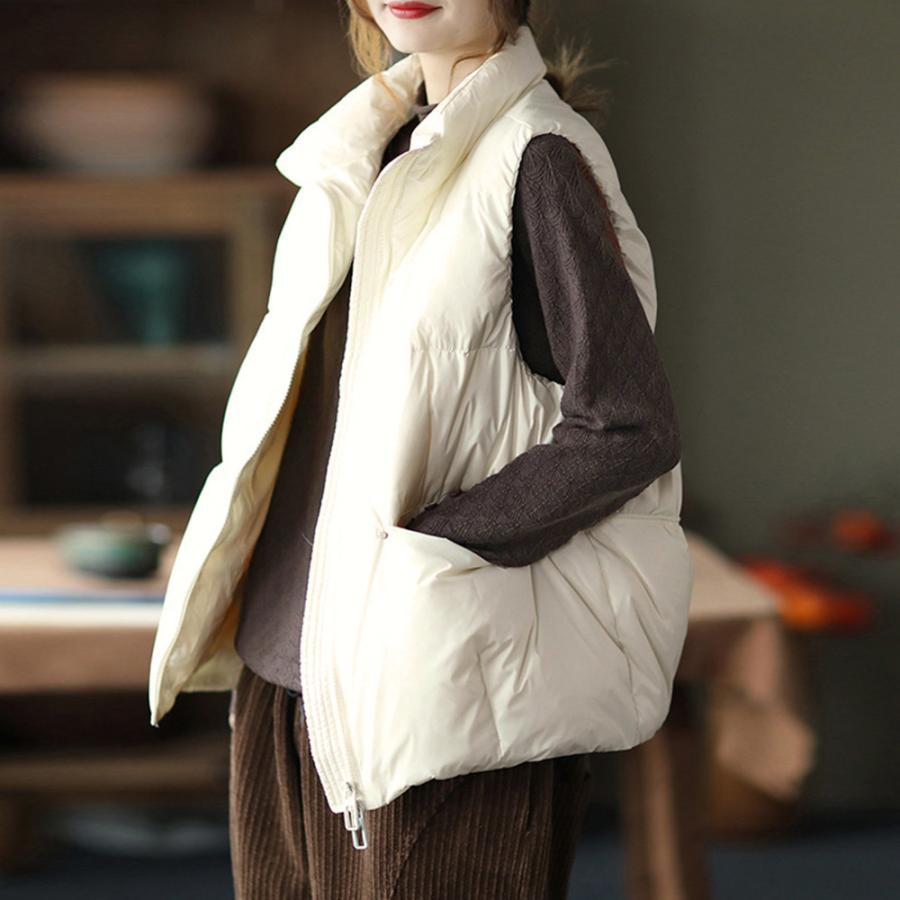 温かみのあるナチュラルな色合い、これからの肌寒い季節でもオシャレが楽しくなる袖なしキルディングダウンベスト