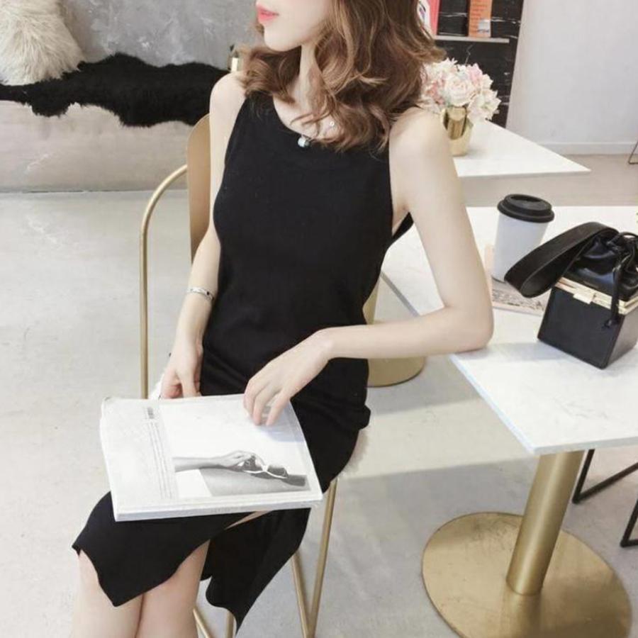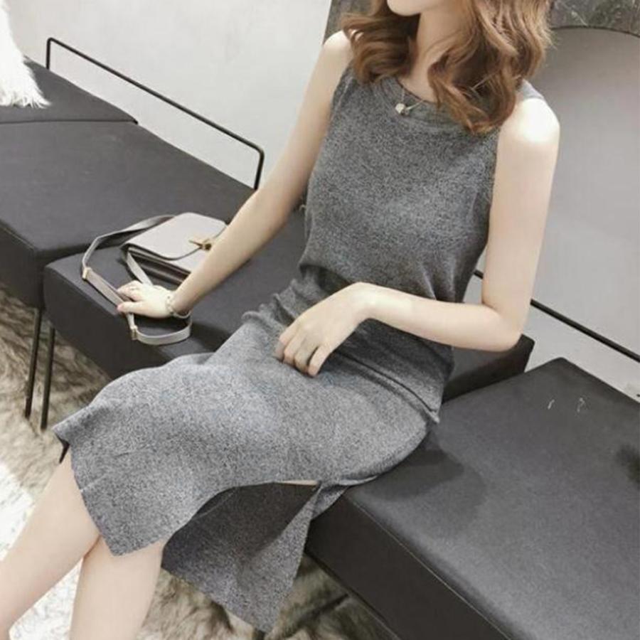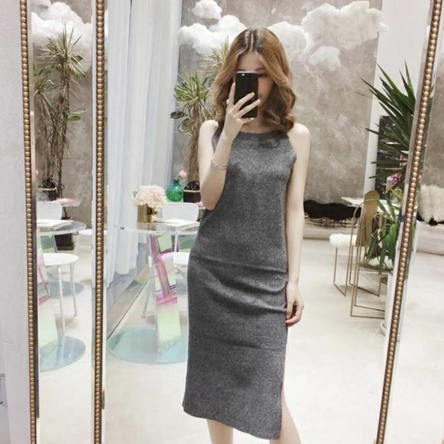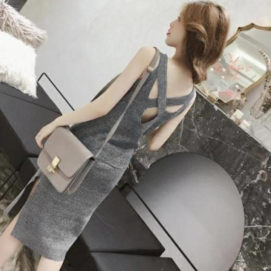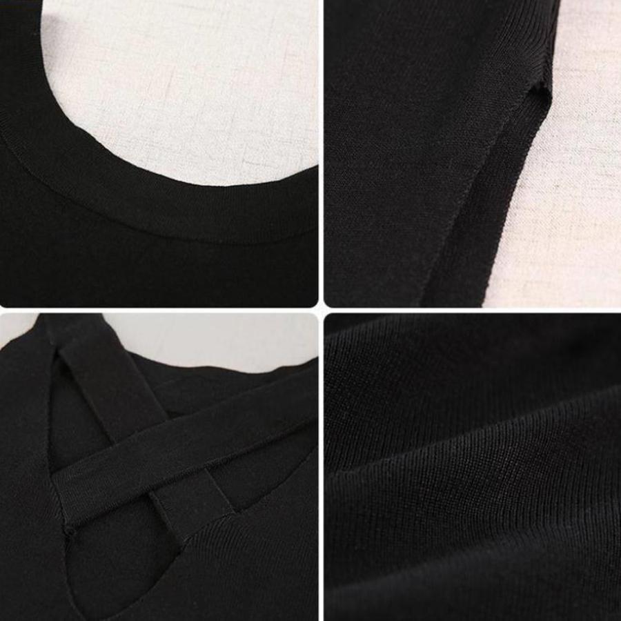ワンピース | スリット レディース タイト膝下丈 ロングワンピ 着やせ バッククロス おしゃれ ニットノースリーブ