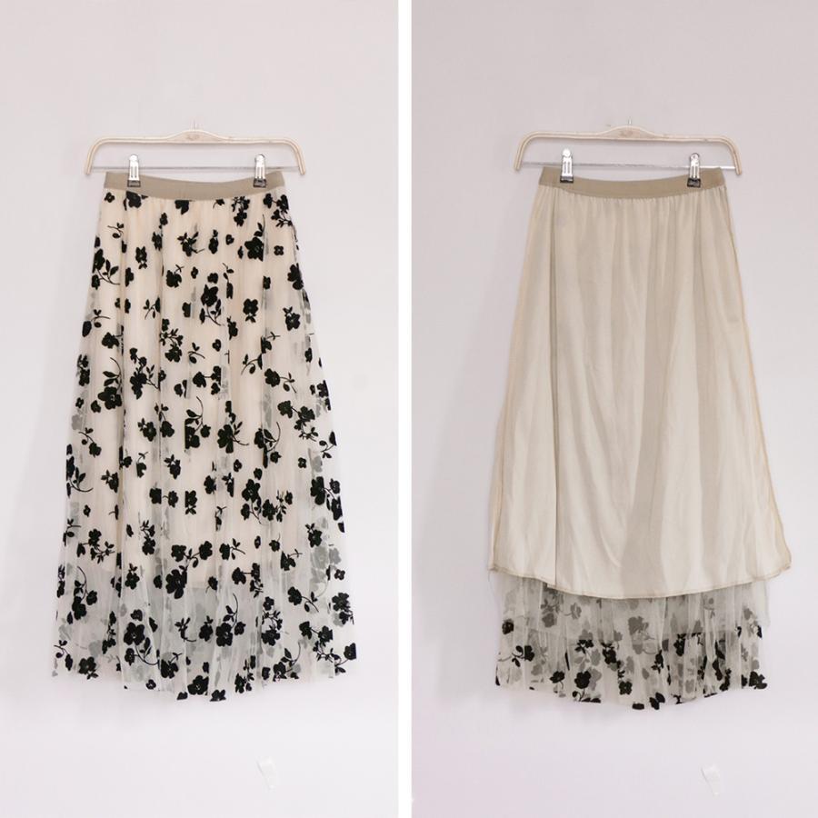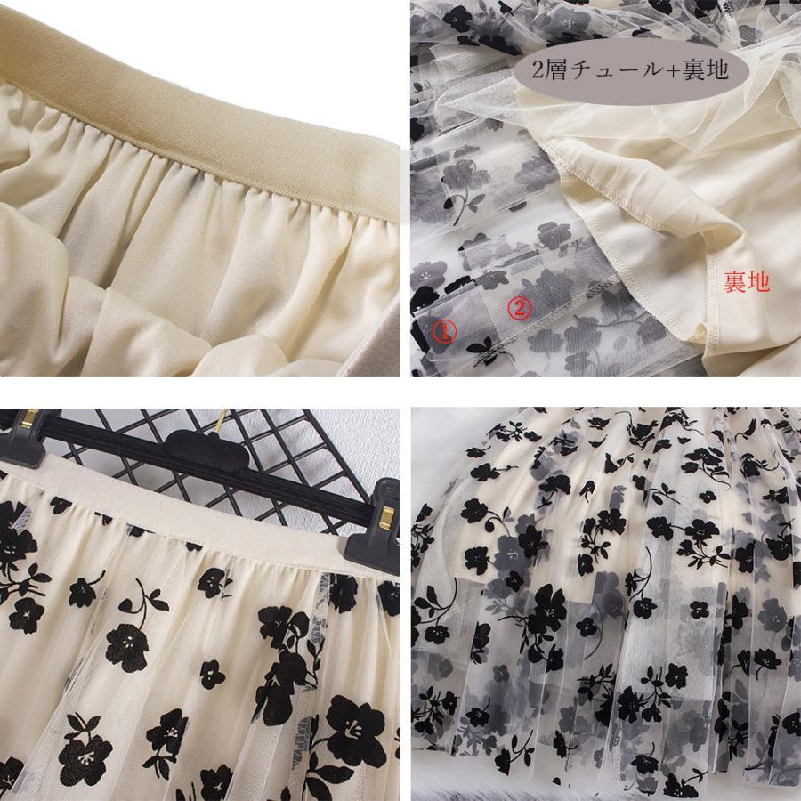 フレアスカート レディース 花柄スカート ボリューム ウエストゴム 裏地あり フェミニン お出かけ