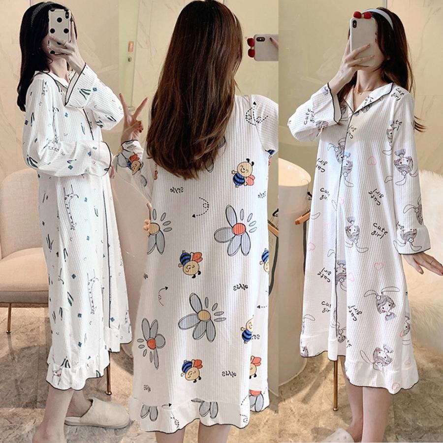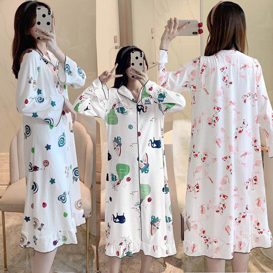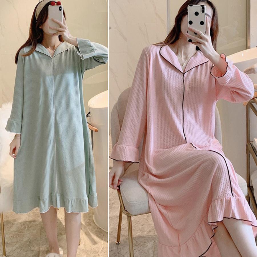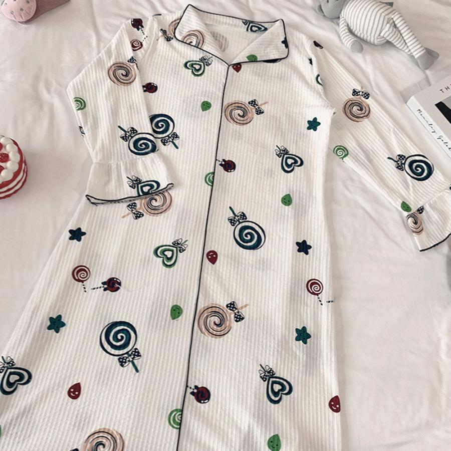 春夏の季節にぴったりな薄手長袖レディースワンピースパジャマ