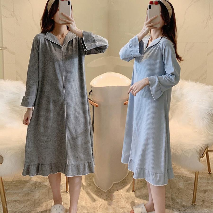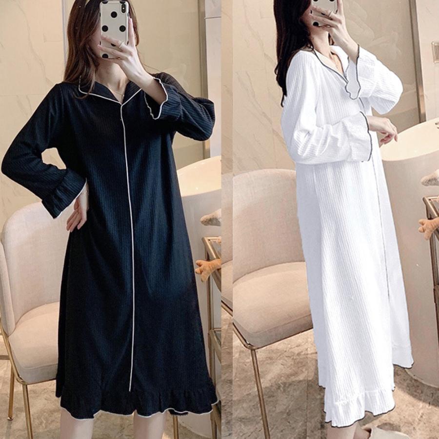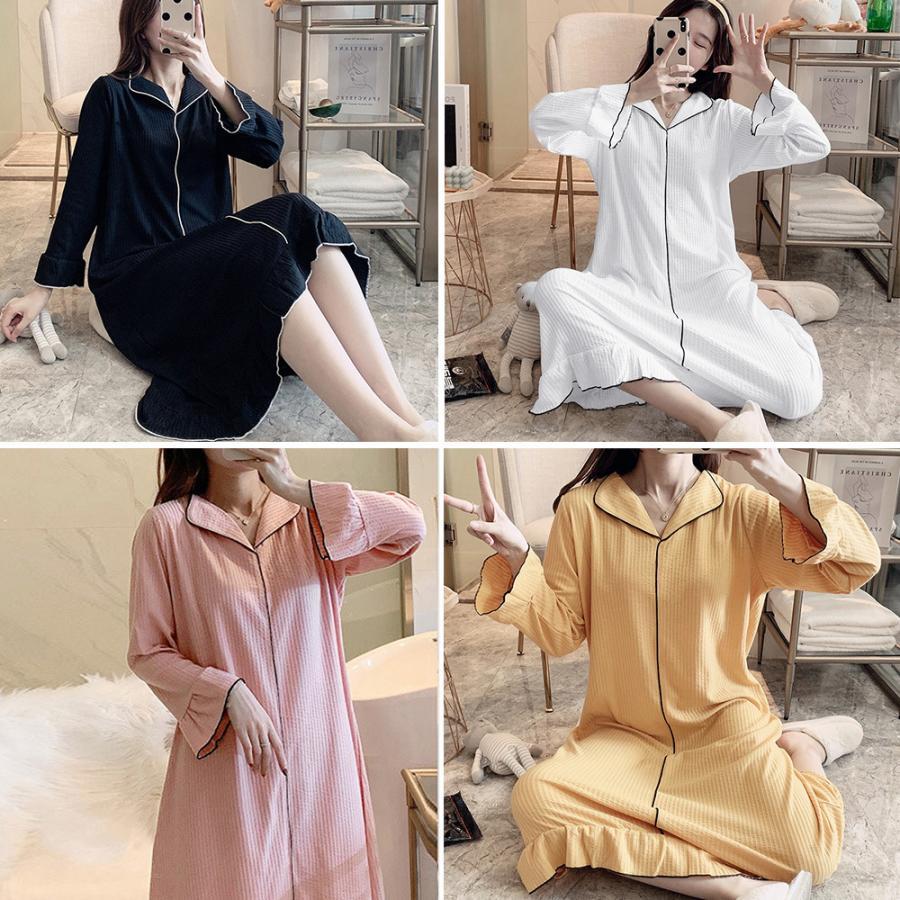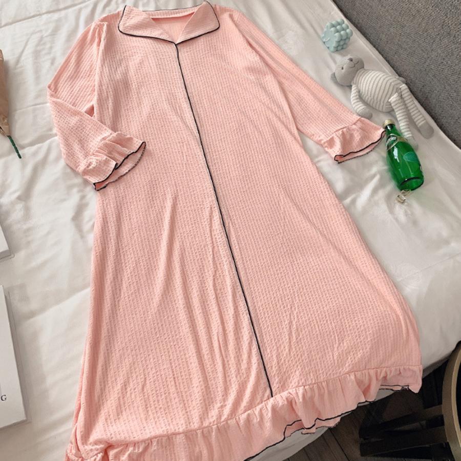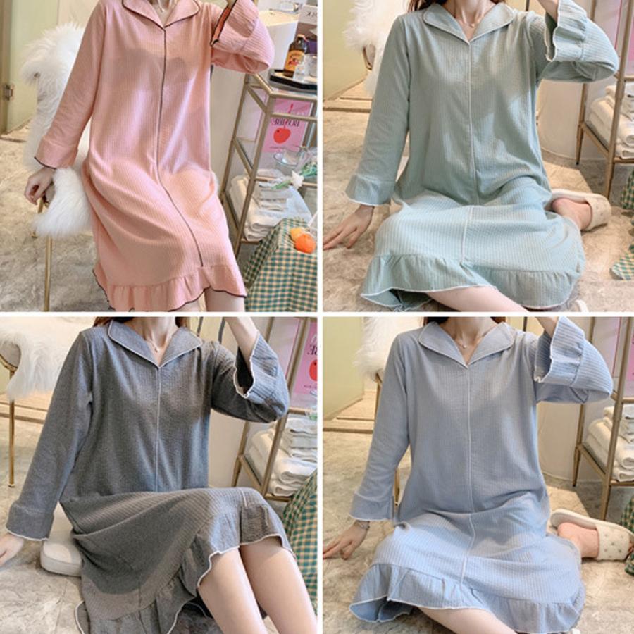春夏の季節にぴったりな薄手長袖レディースワンピースパジャマ