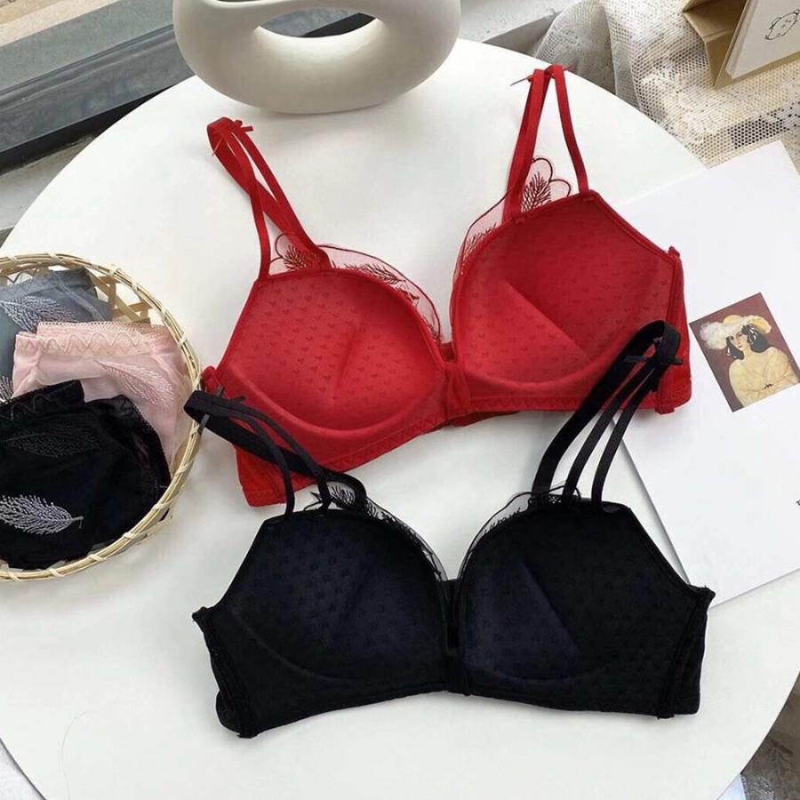 小さいキュートなリボン付きのブラジャーはダブルストラップでバストをしっ