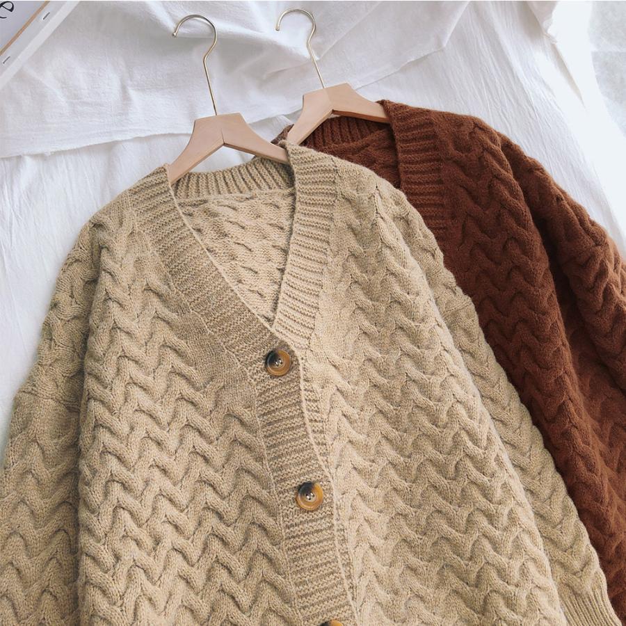 ニットカーディガン レトロ レディース 厚手 長袖 Vネック アウター 羽織り 秋冬 体型カバー 韓国風 ニットコート