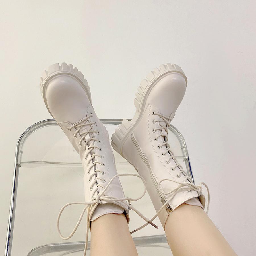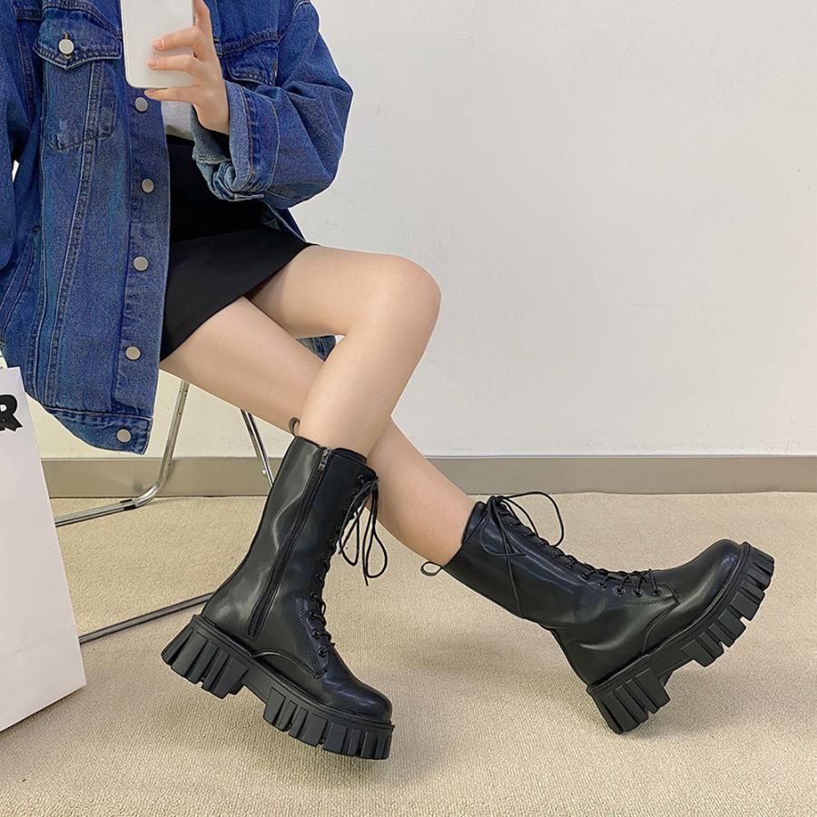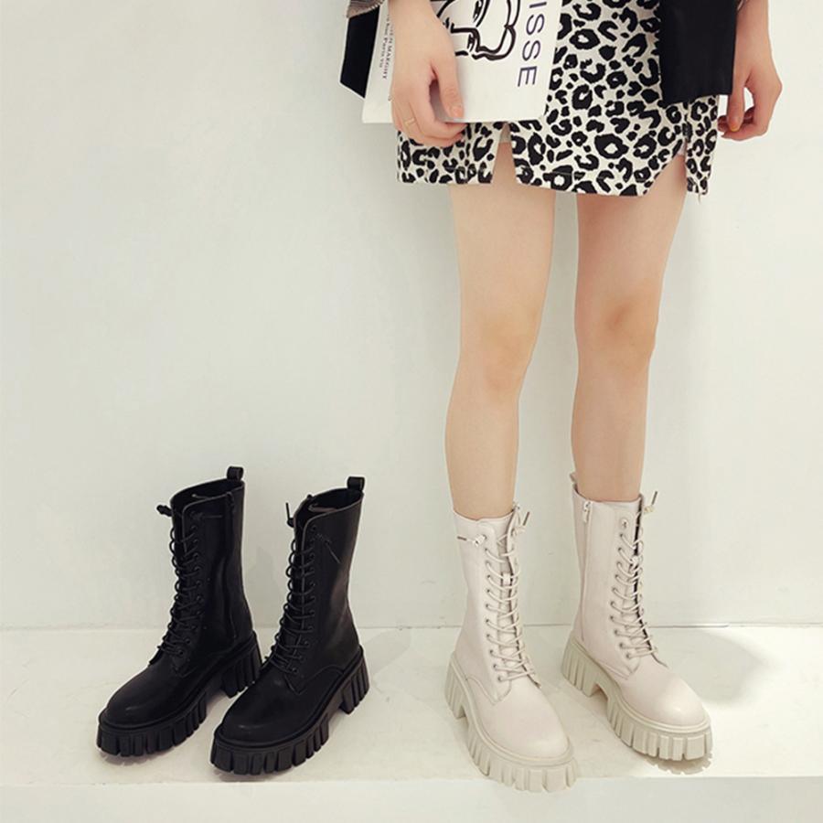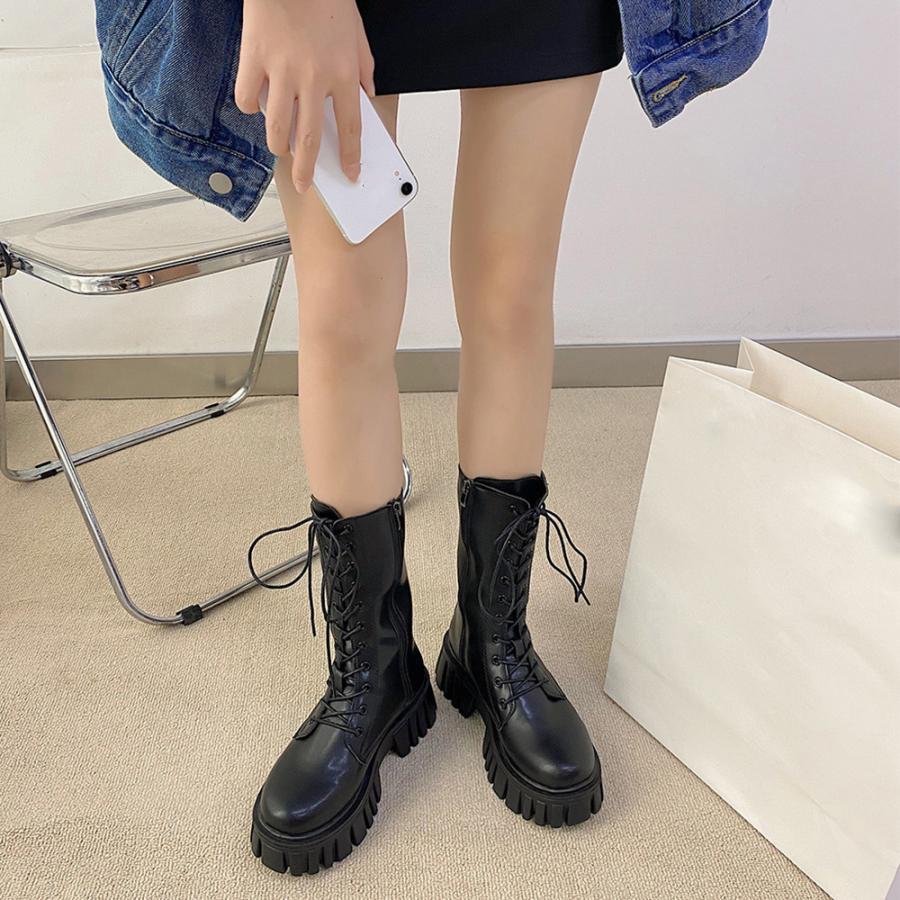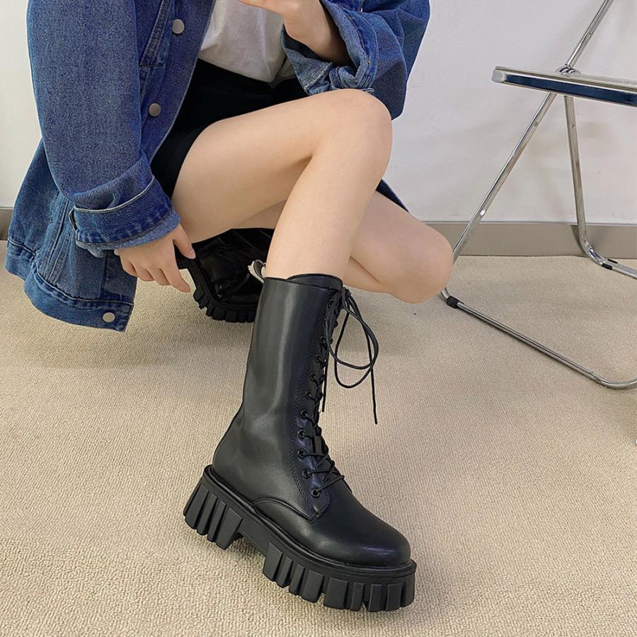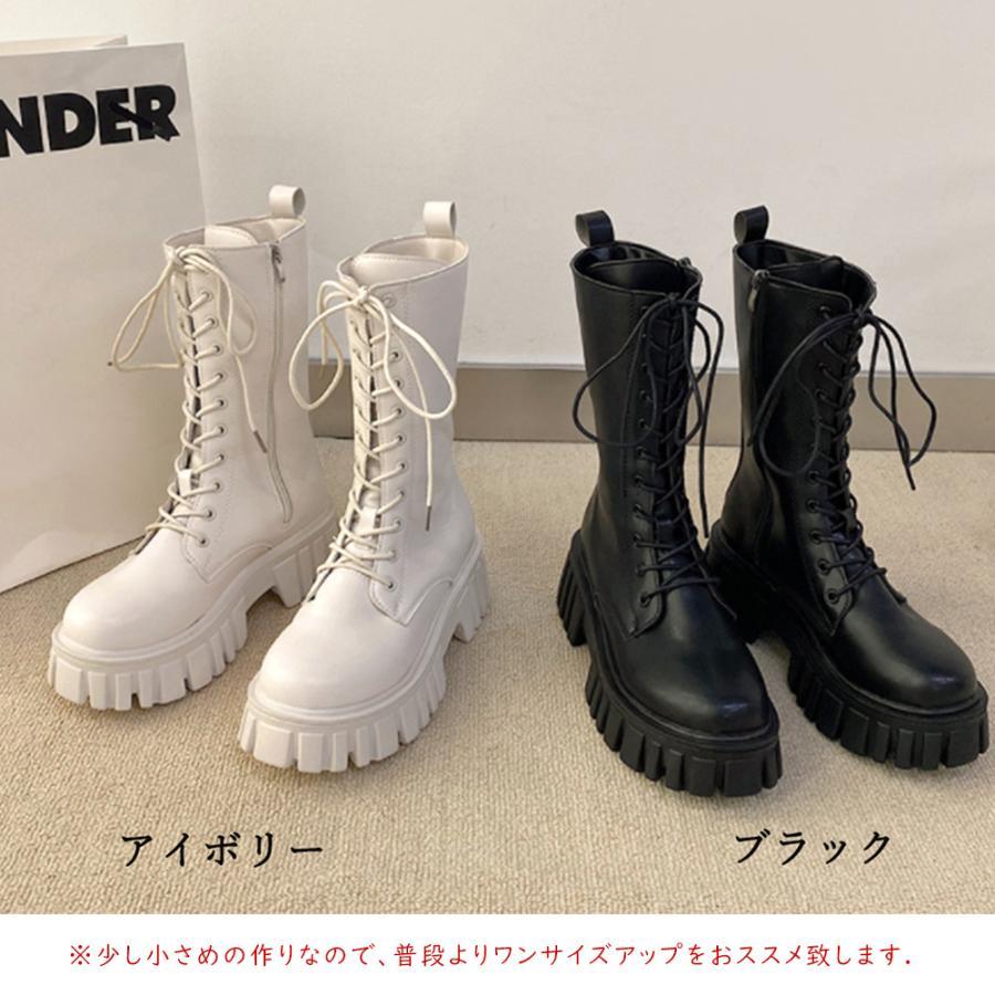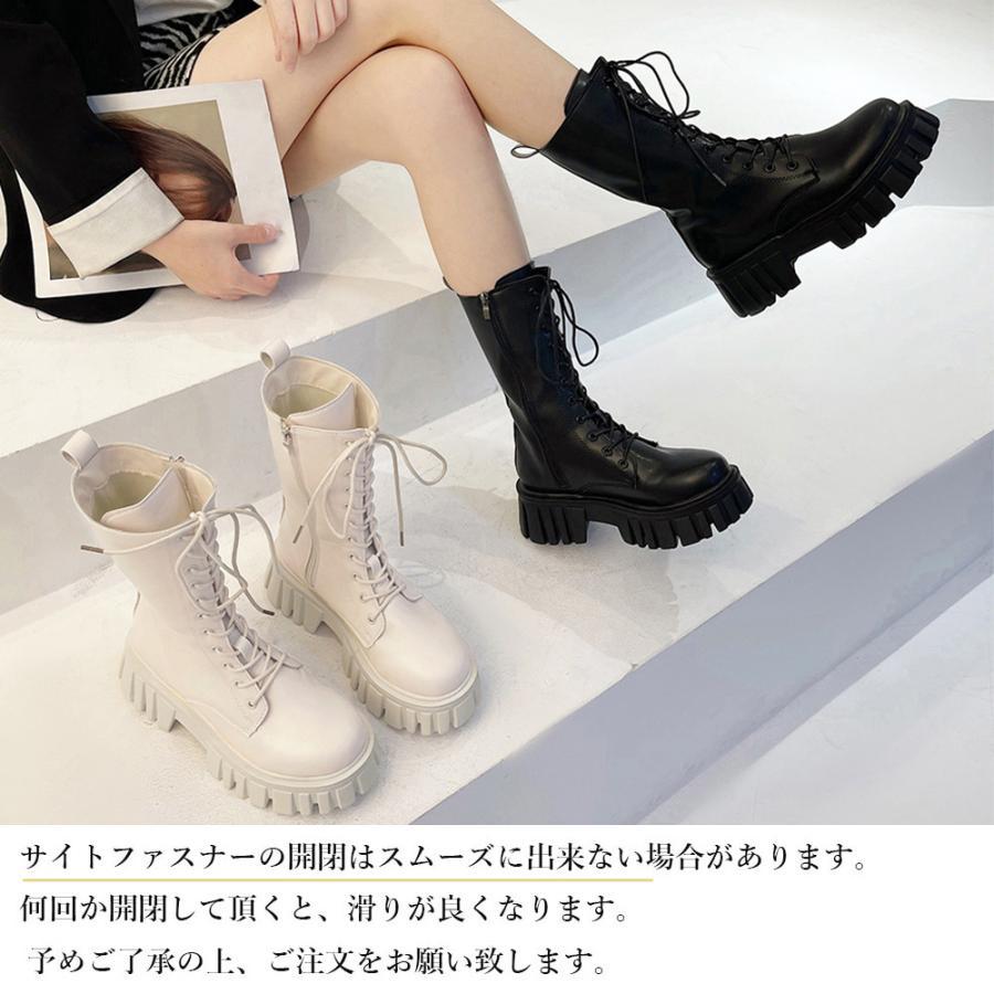 秋冬 ワークブーツ レディース 厚底 ミリタリーブーツ オルチャン バイカー ファッション 美脚 靴 サイドファスナー