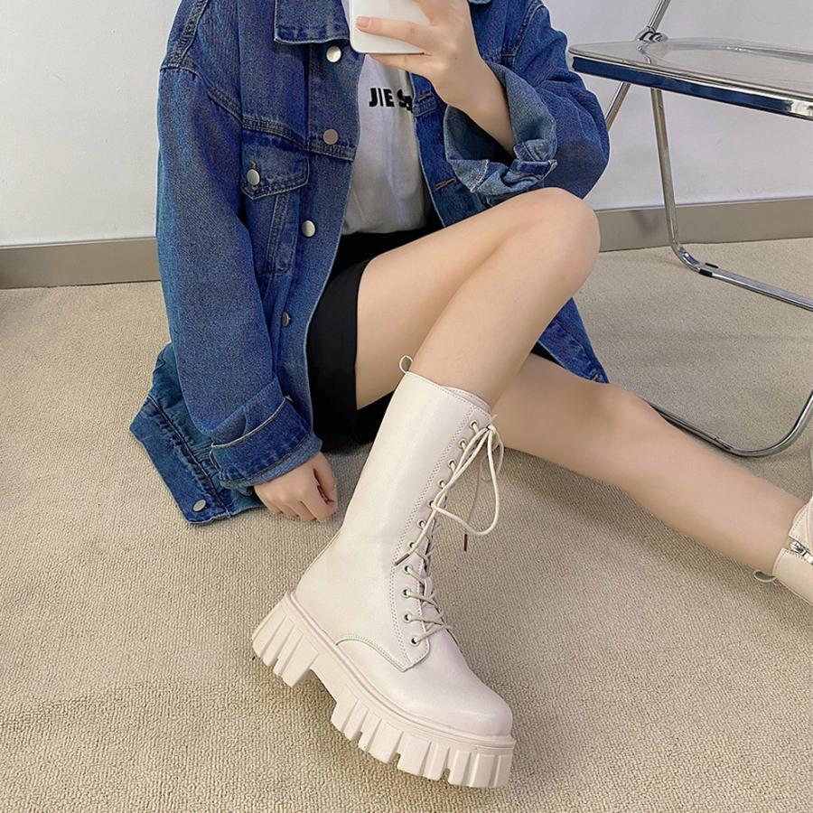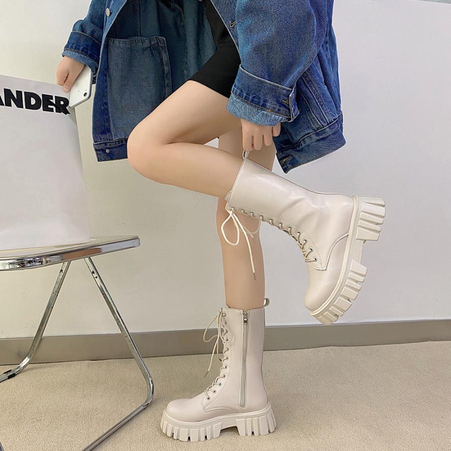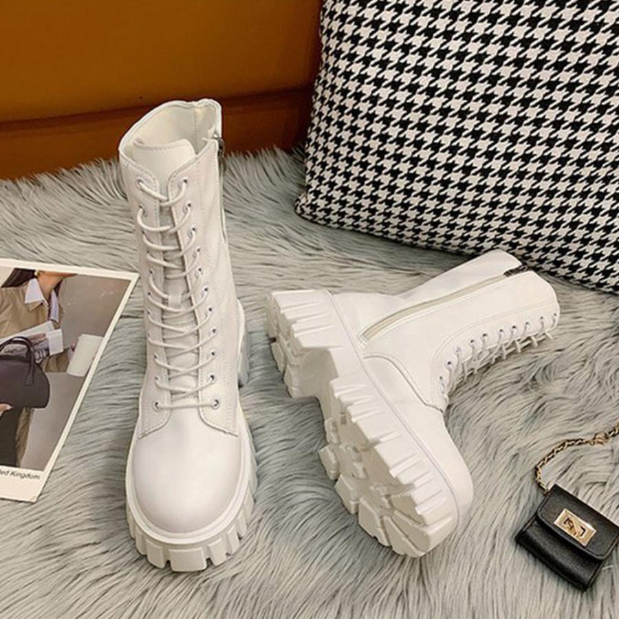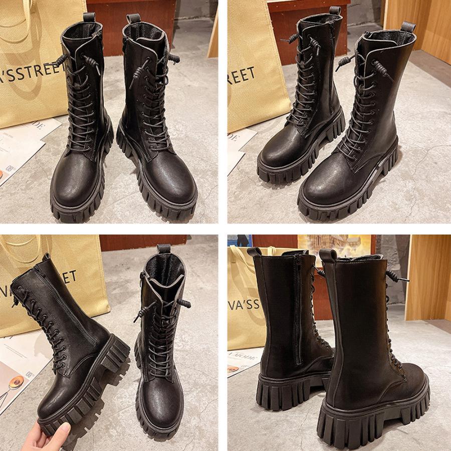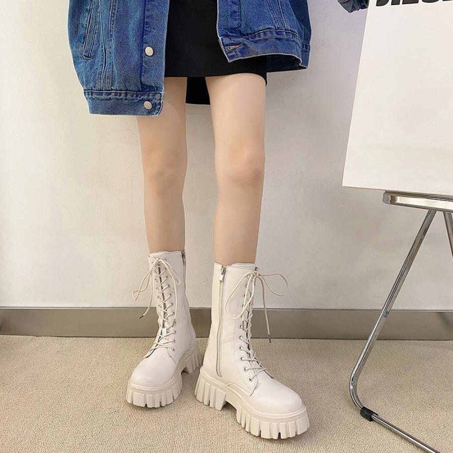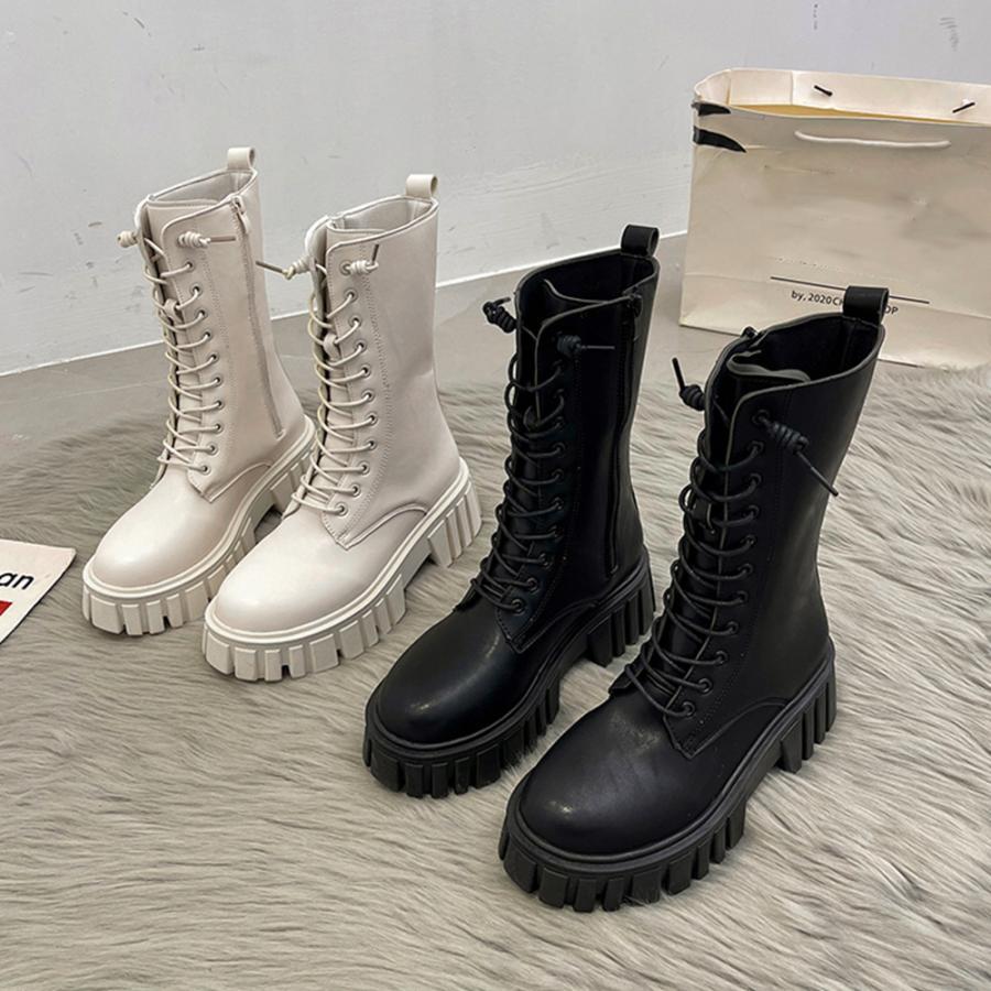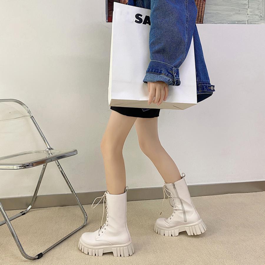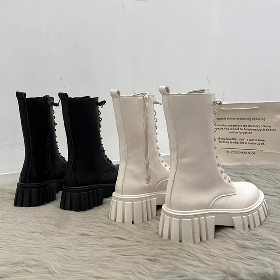 秋冬 ワークブーツ レディース 厚底 ミリタリーブーツ オルチャン バイカー ファッション 美脚 靴 サイドファスナー