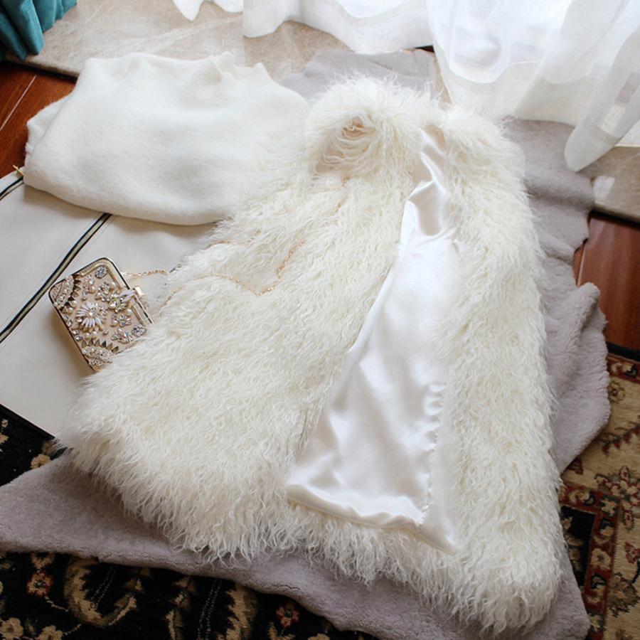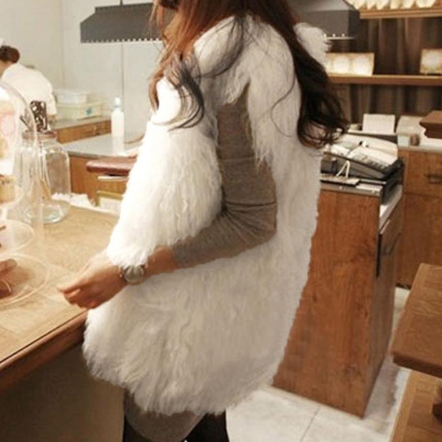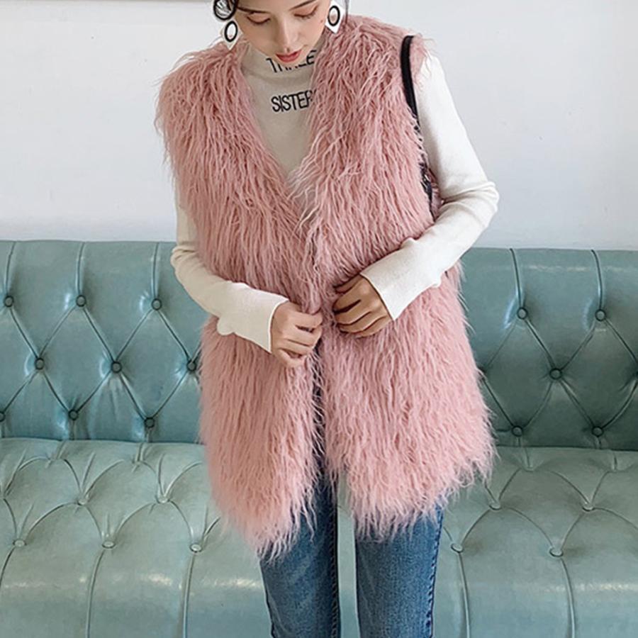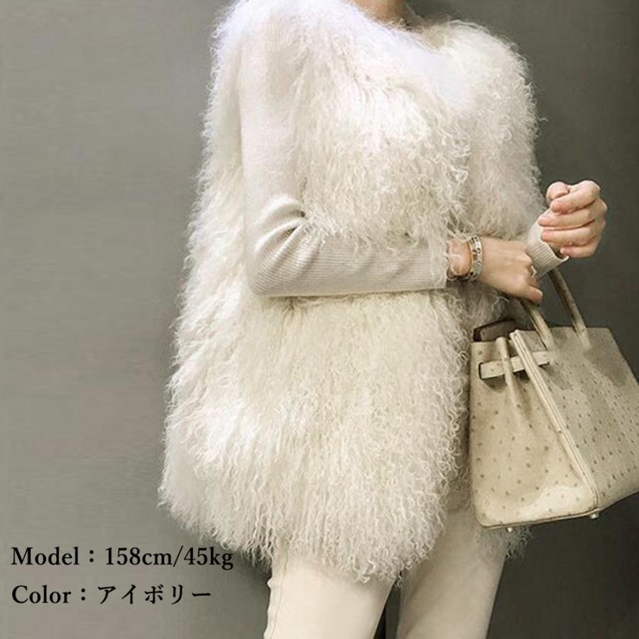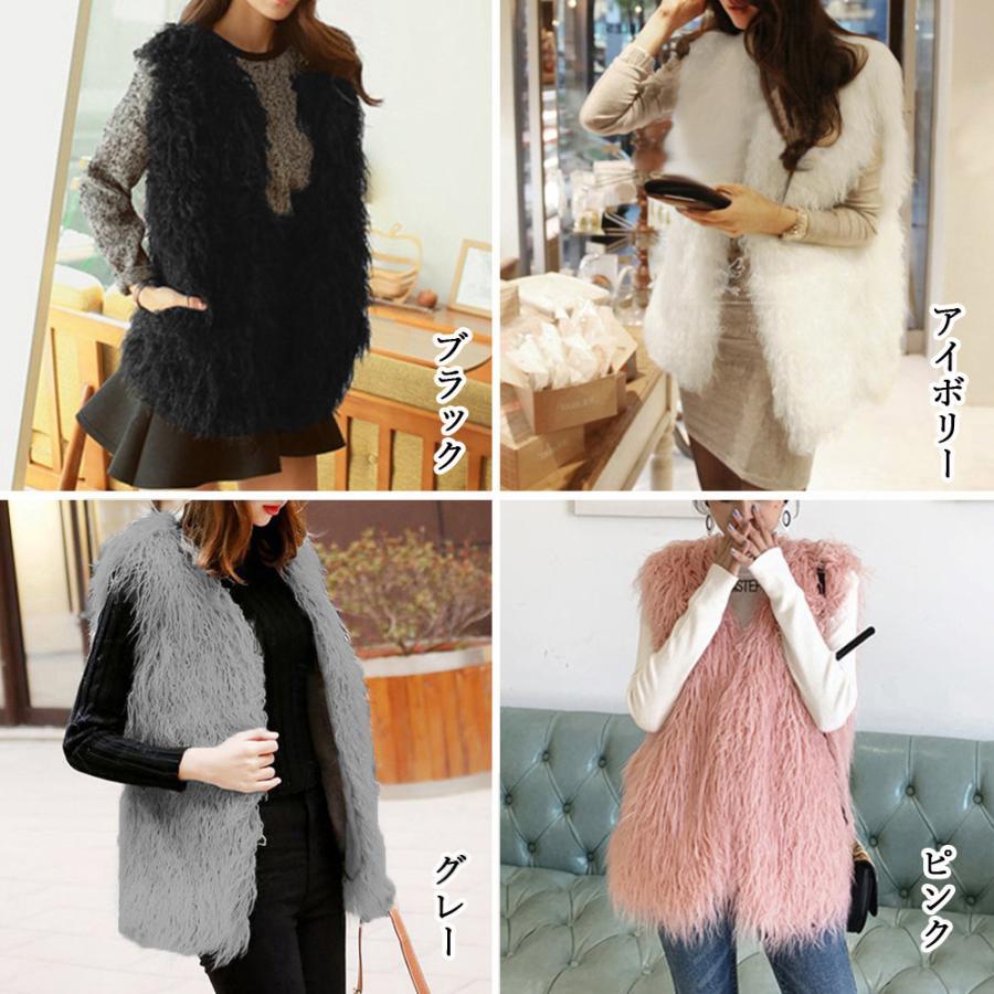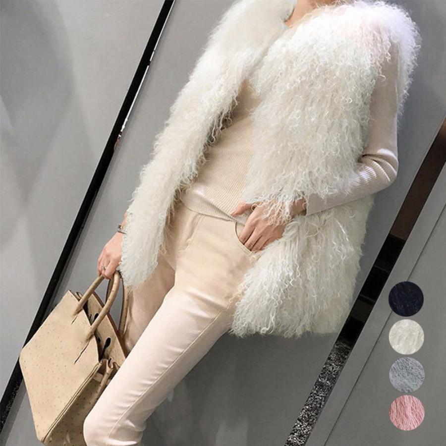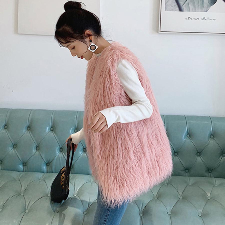 ボリューム シープファー風ベスト 体型カバー 重ね着ファージレフェミニンファージャケットゆったり ミドル丈ふんわり着やせ