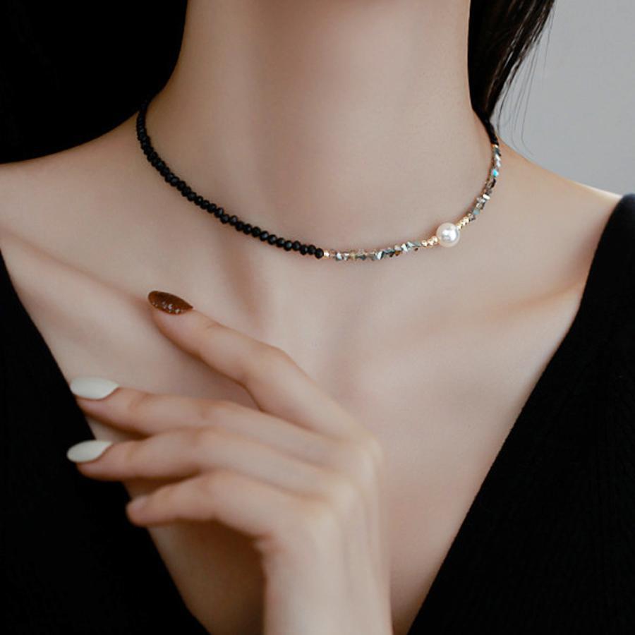 華やかな一粒パールの輝きと小ぶりなビーズのデコルテを美しく飾るネックレス