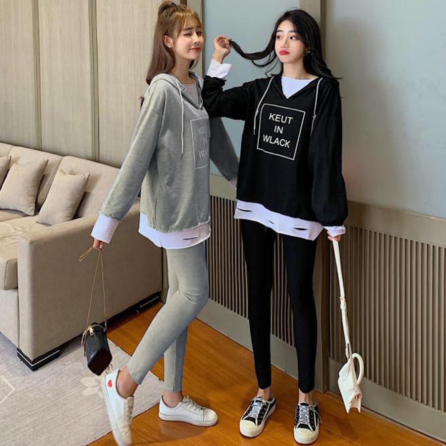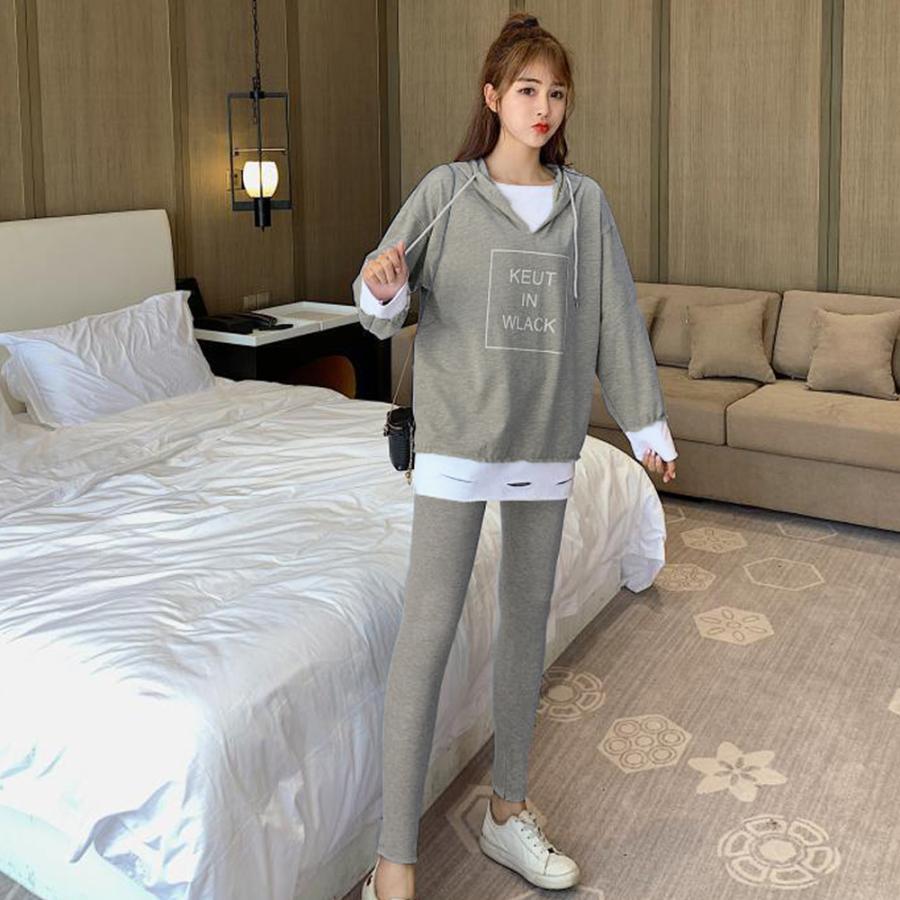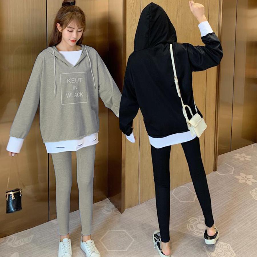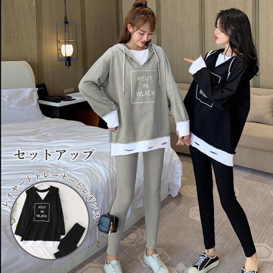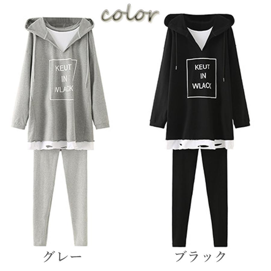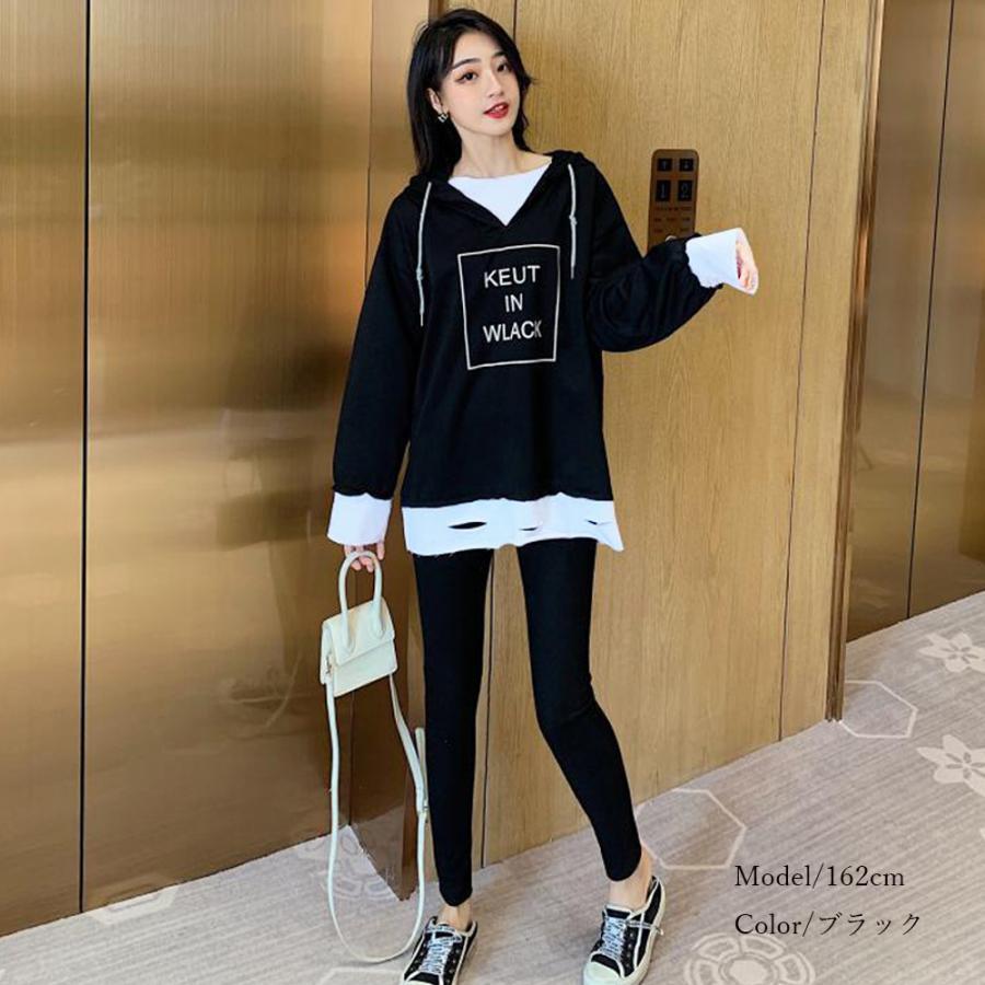 パーカ | レギンス レディース ルームウェアセット 部屋着 レイヤード風 セットアップ カジュアル 重ね着風 2点セット パーカー