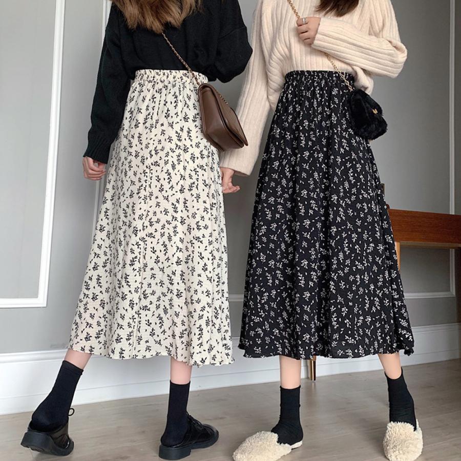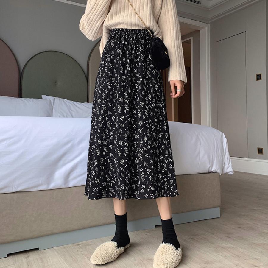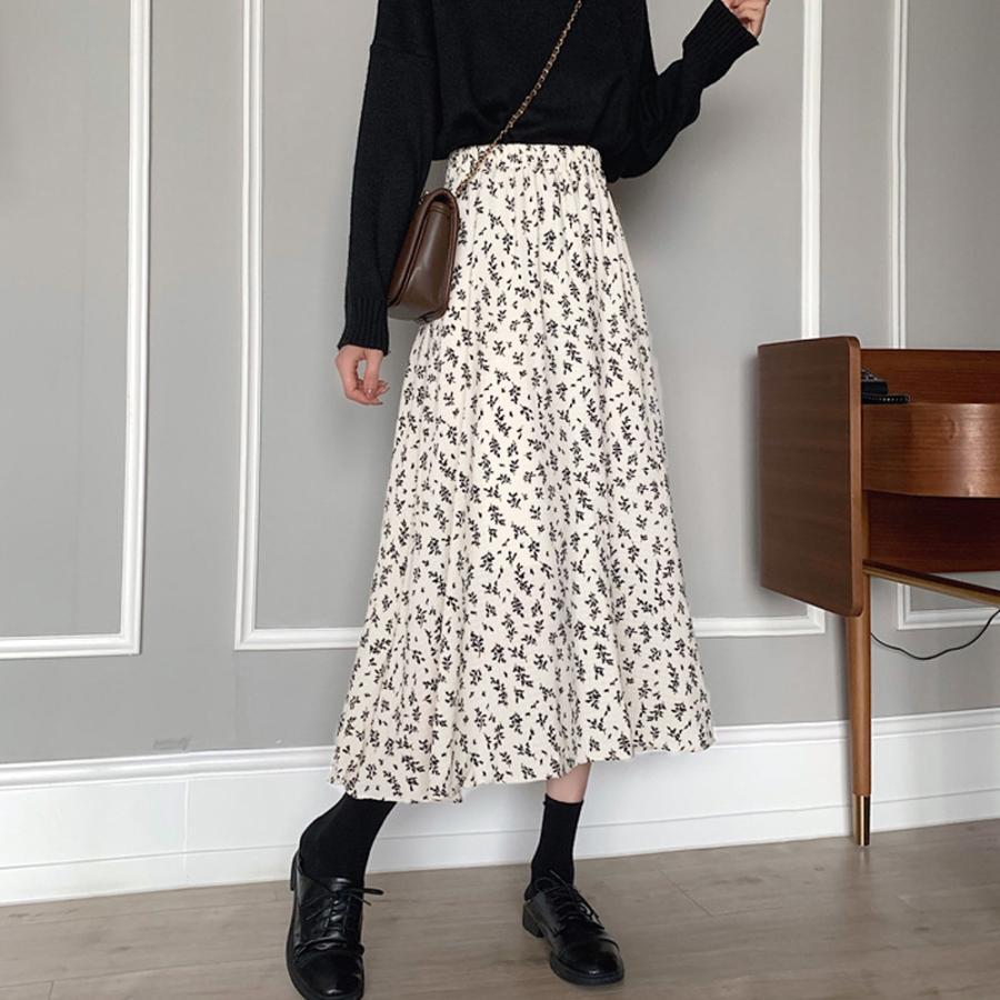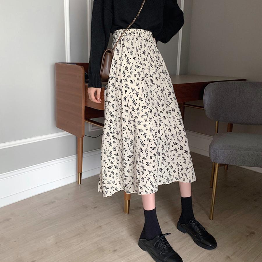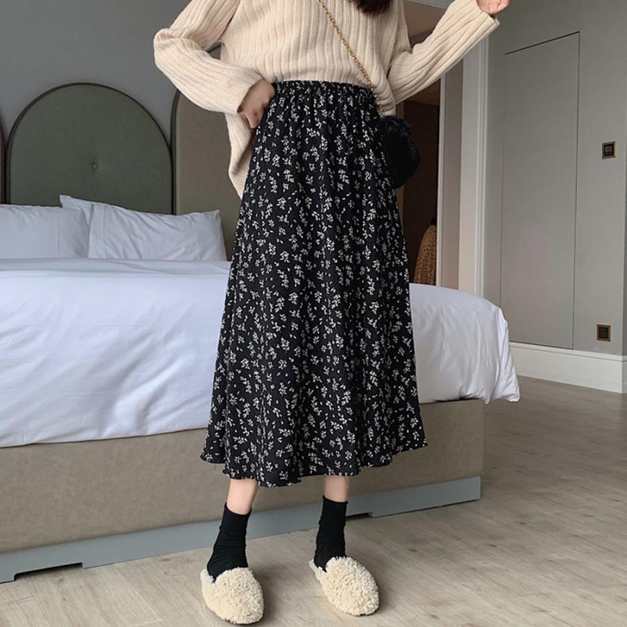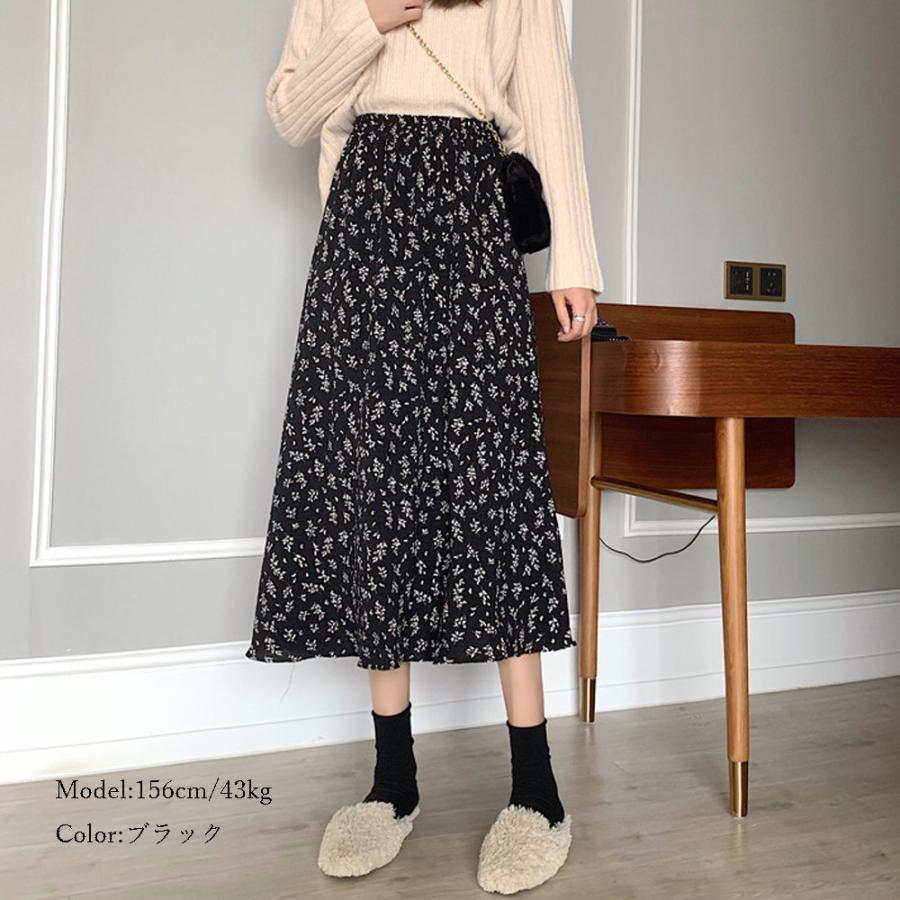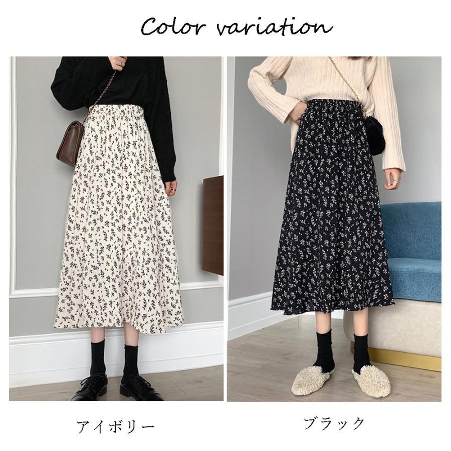 スカート レディース 花柄 ハイウエスト ウエストゴム 膝下 ボトムス おしゃれ 大人
