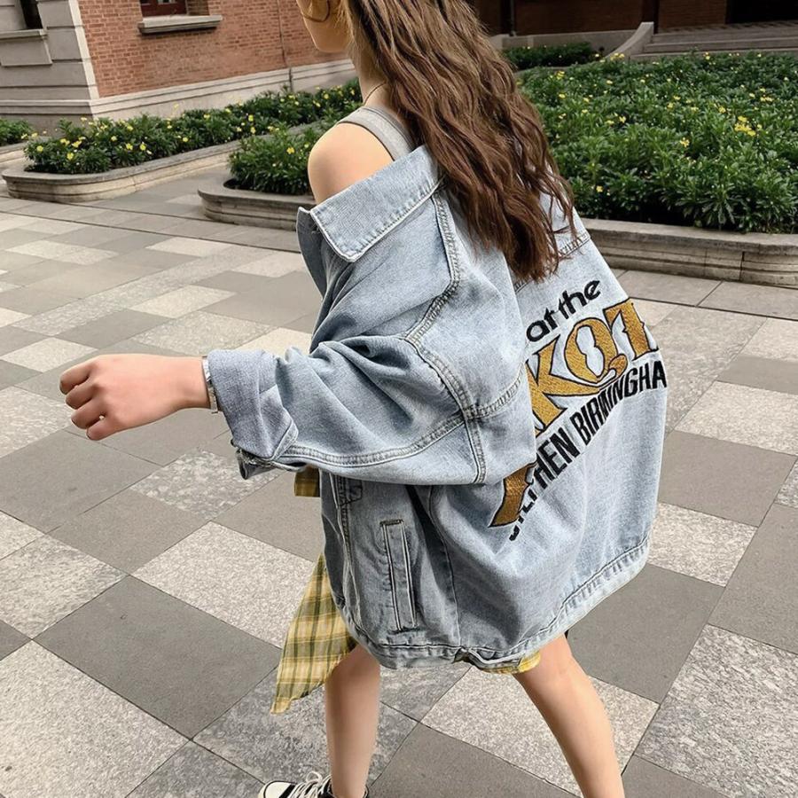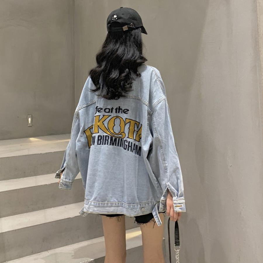 刺しゅう デニムコート 体型カバー 春秋冬 アウター ゆったり 英字プリント Gジャン オシャレ カジュアルトップス