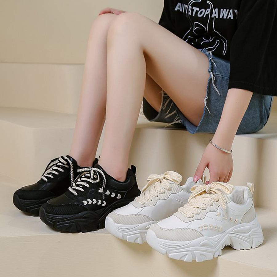 韓国風 ボリューム厚底スニーカー 黒カジュアル スポーティー 美脚 疲れにくい プラットフォーム 歩きやすい靴 春夏秋冬