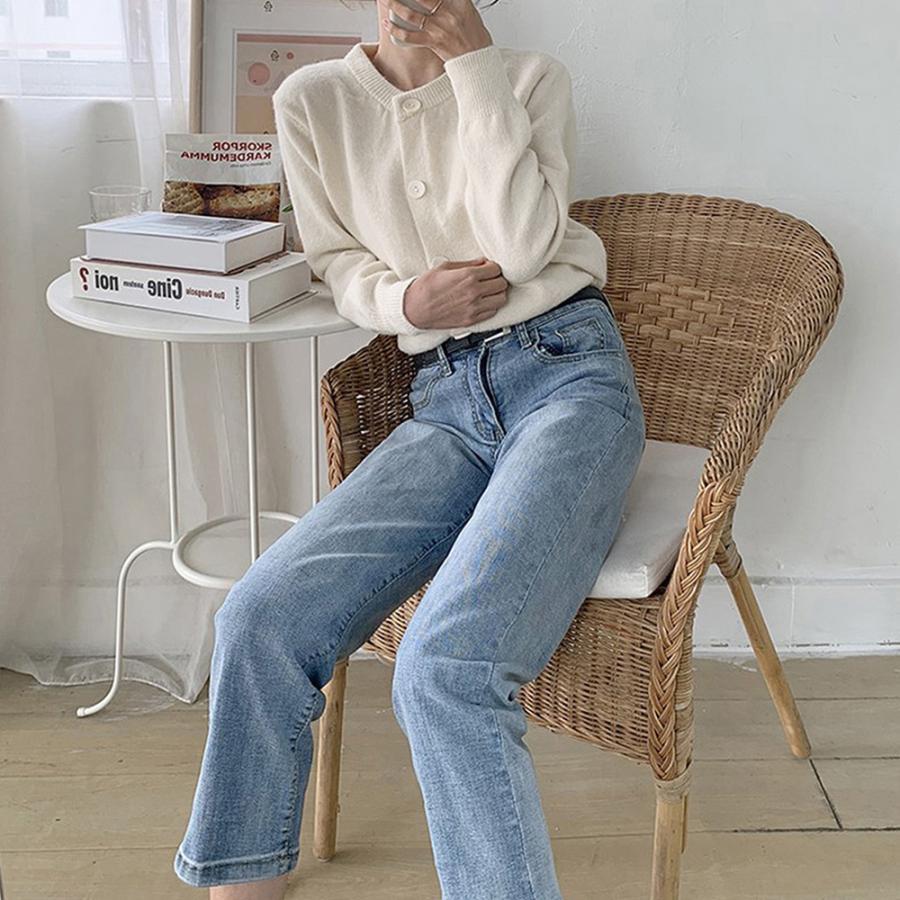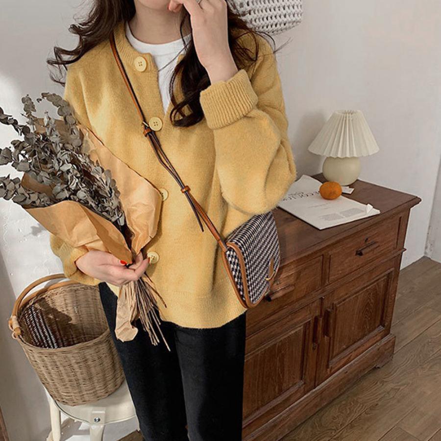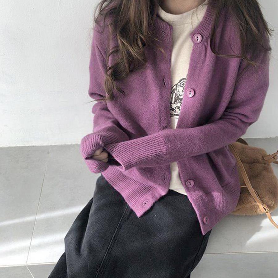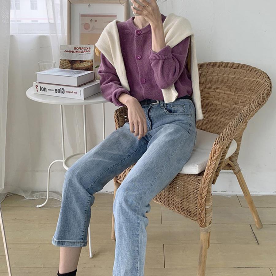 シンプルなコーデに羽織るが特徴的なニットカーディガン