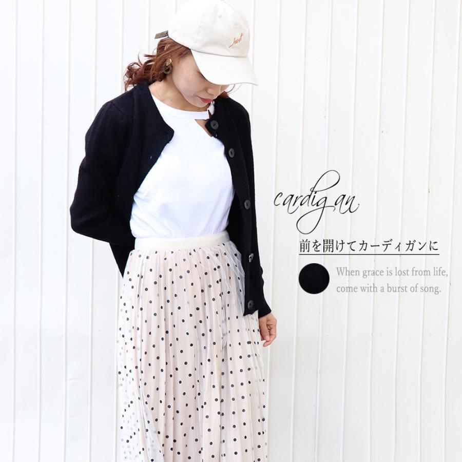前を開けてカーディガンに、キャミやタンクトップをインナーに合わせ、ボタンを閉じてセーターのコーディネートするのもおしゃれ